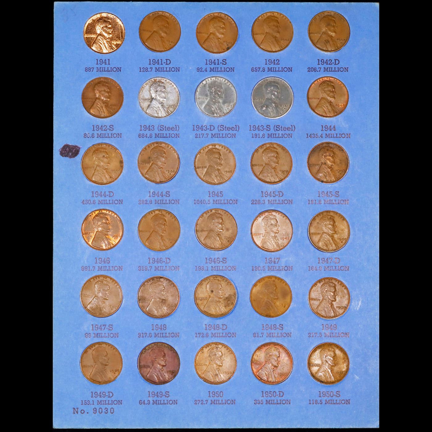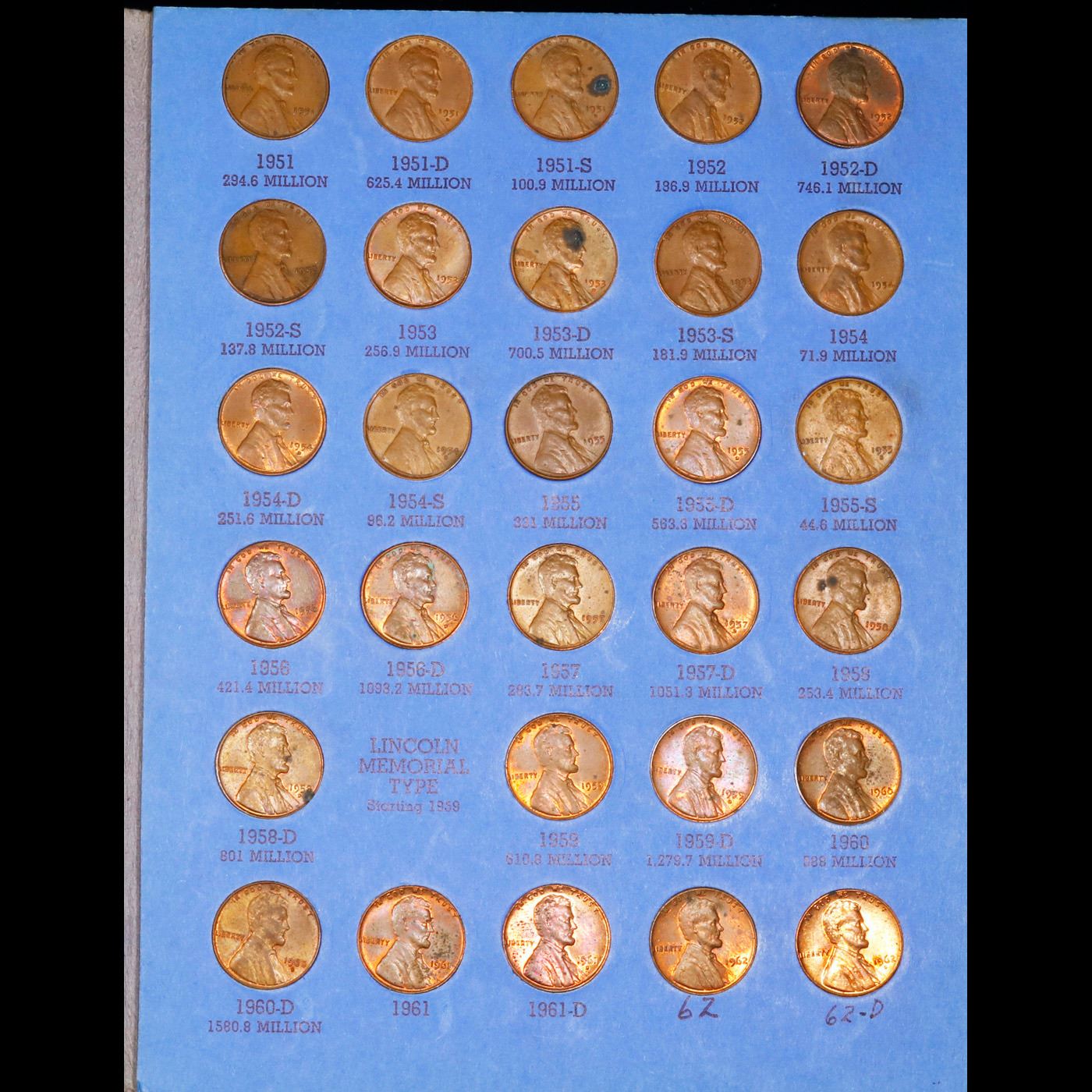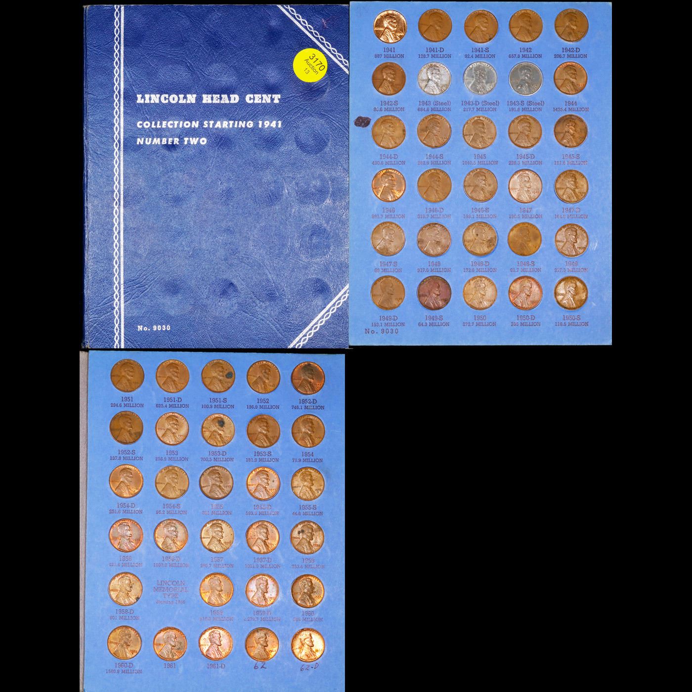 Complete Lincoln 1c Whitiman Album, 1941-1961, 59 coins in Total
