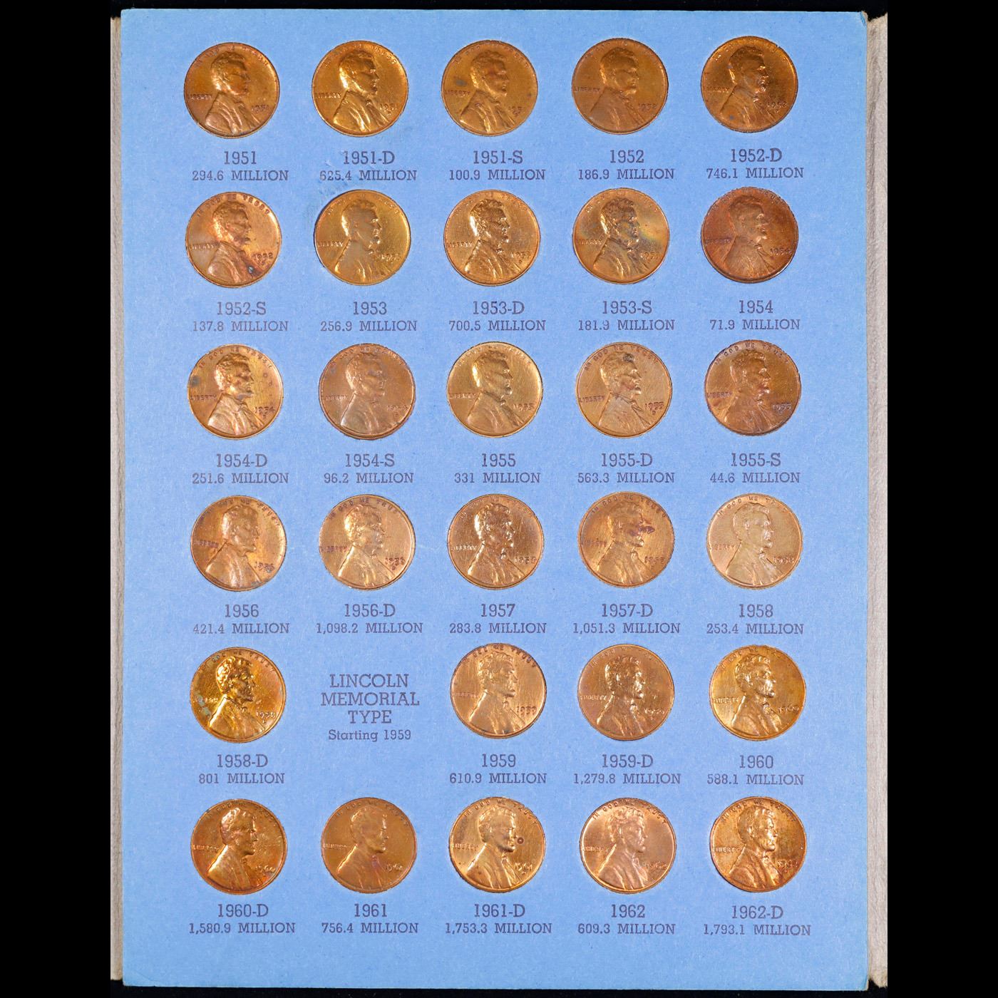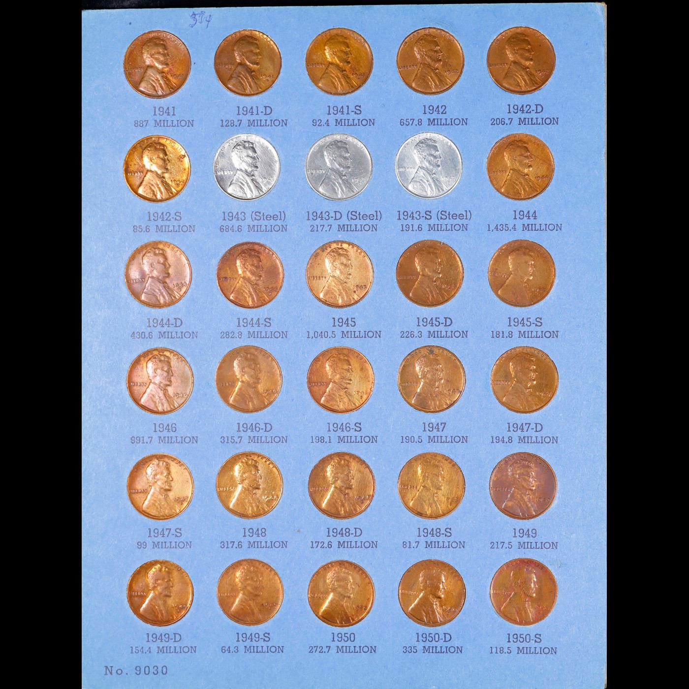 Complete Lincoln 1c Whitman Folder, 1941-1975 88 coins in Total