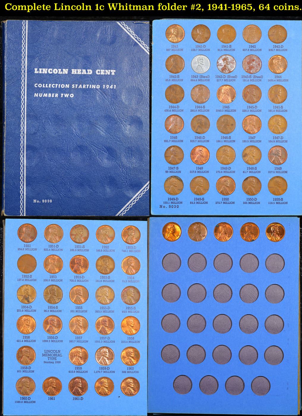 Complete Lincoln 1c Whitman folder #2, 1941-1965, 64 coins.