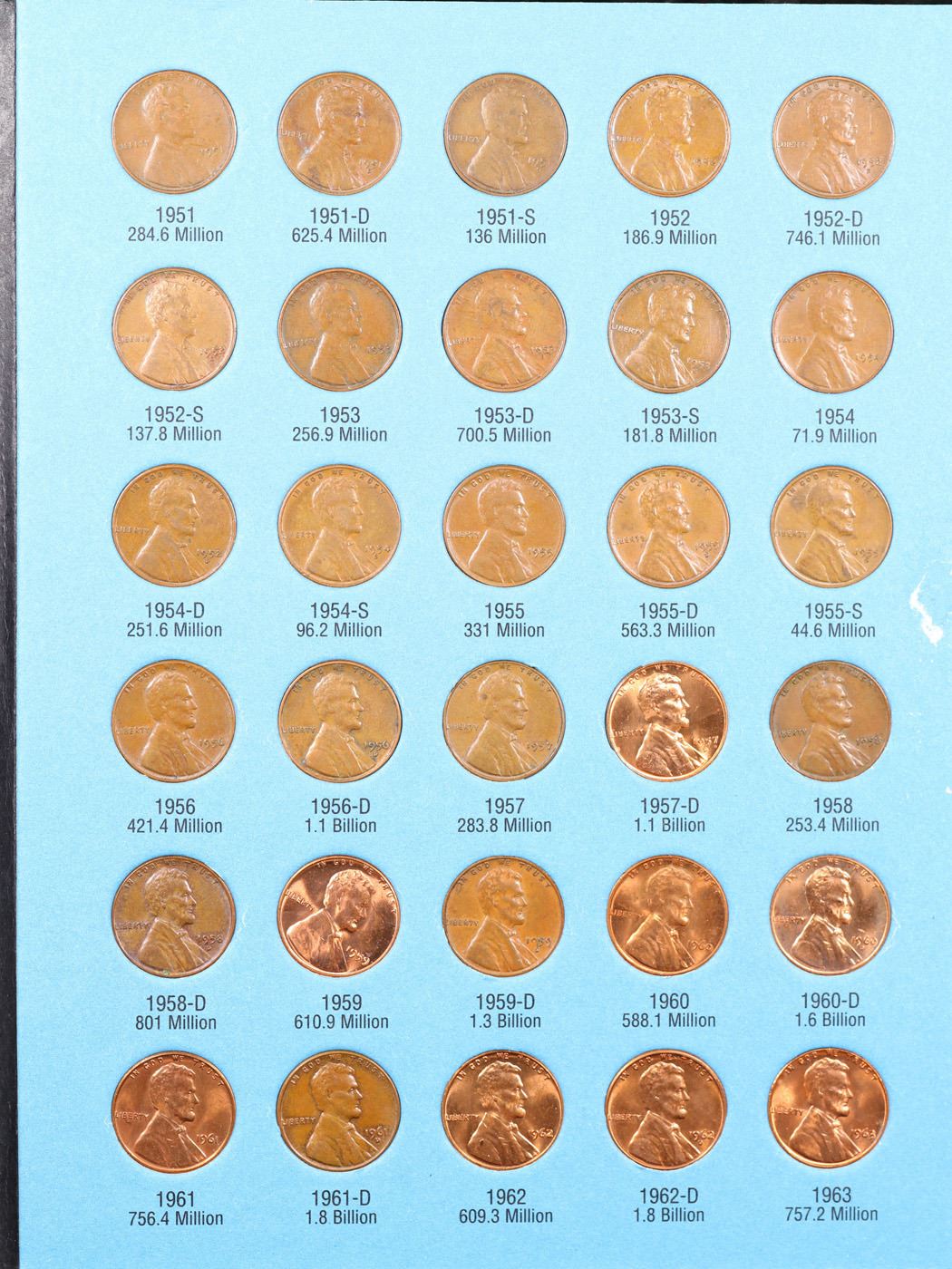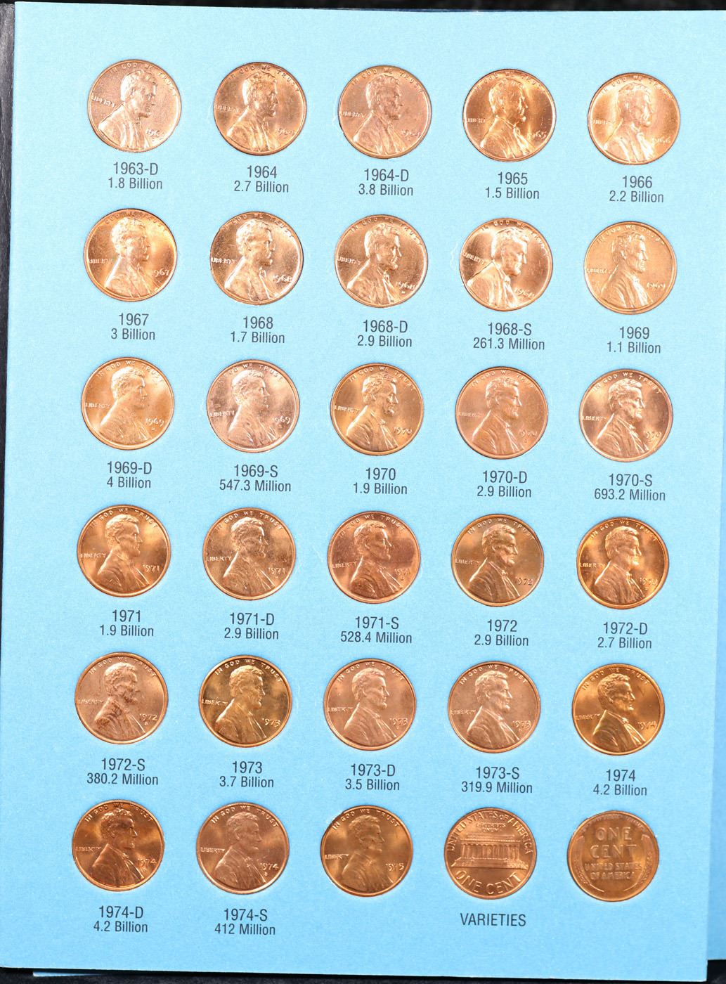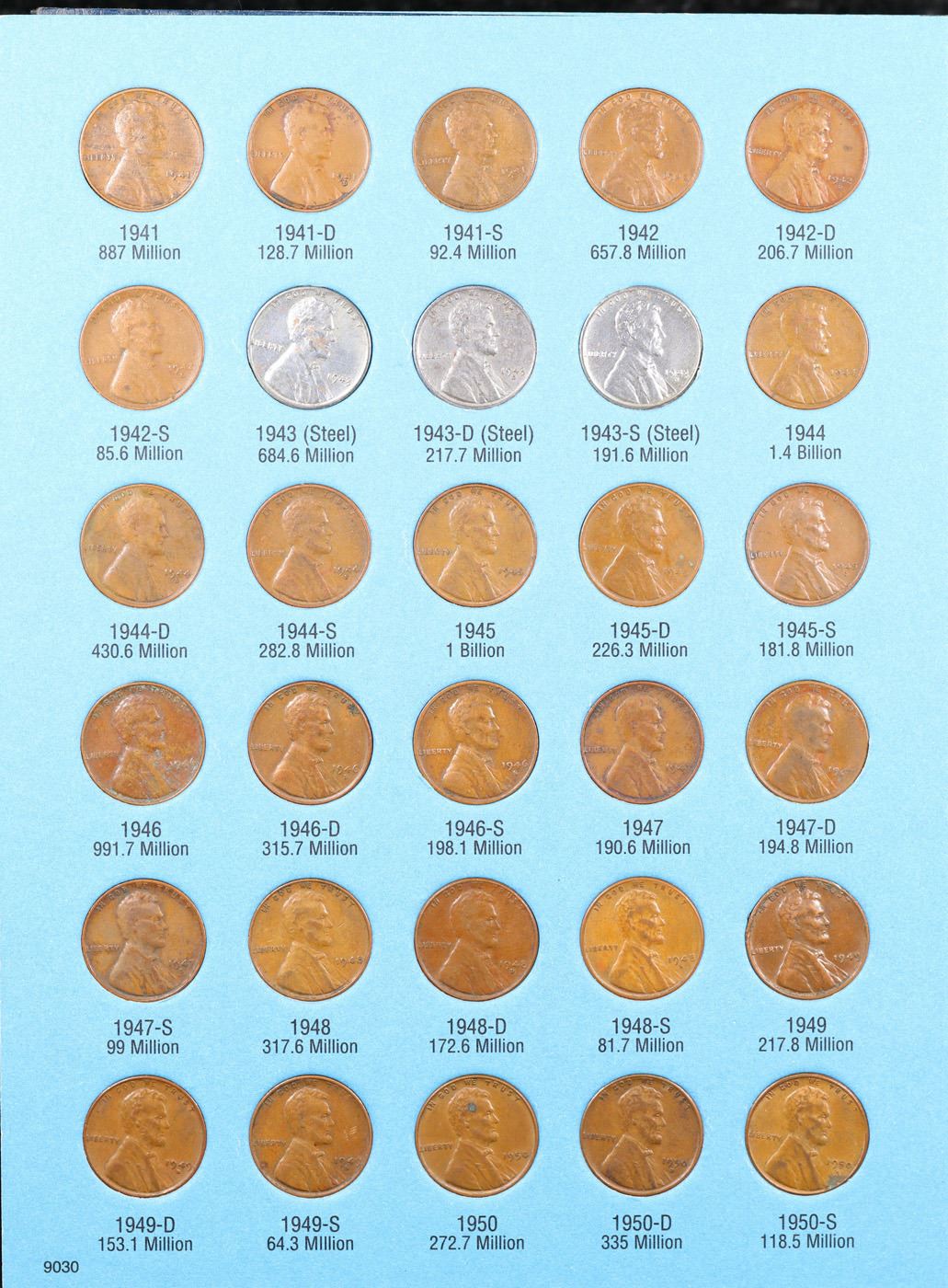 Complete Lincoln 1c Whitman folder #2, 1941-1975, 90 coins including an extra 1979-p and 1958-d.