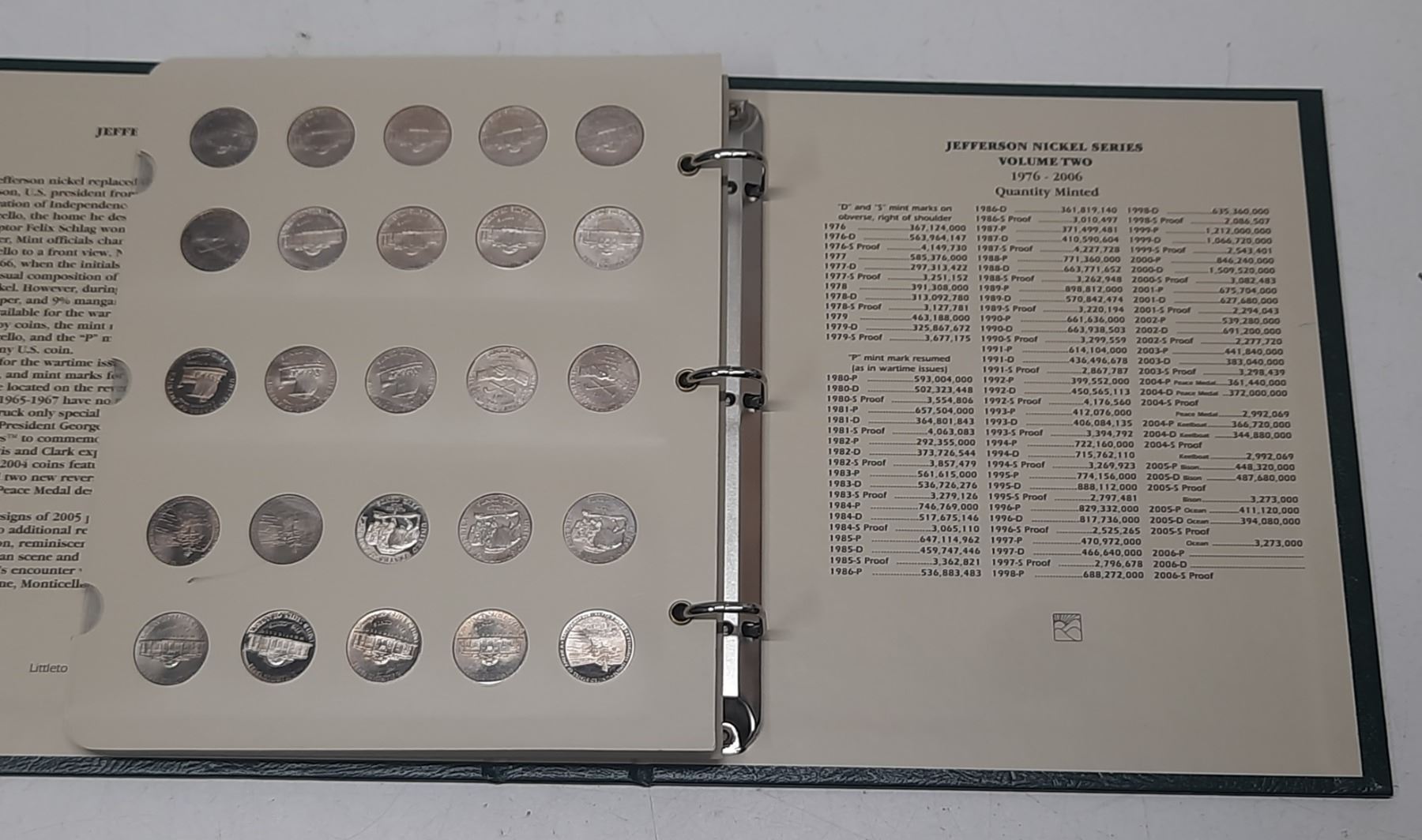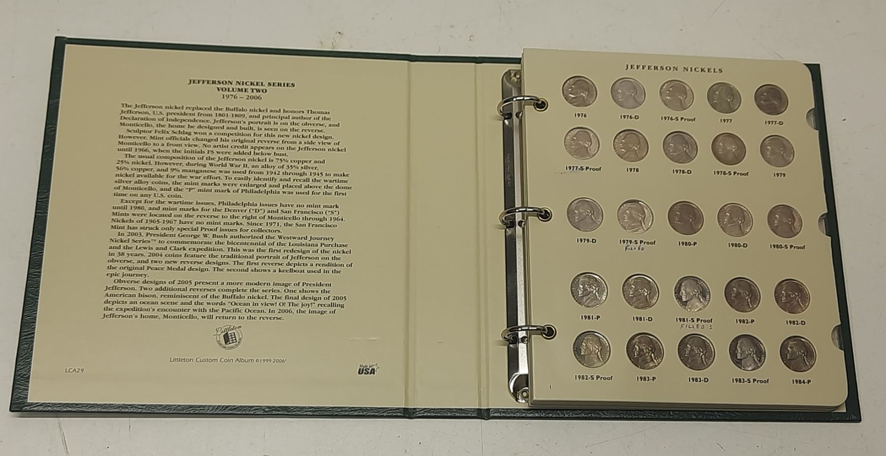 Complete Littleton Custom Coin Album for U.S. Jefferson Nickels 1976 – 2006. Every coin including Proofs. Archival Quality. Used.