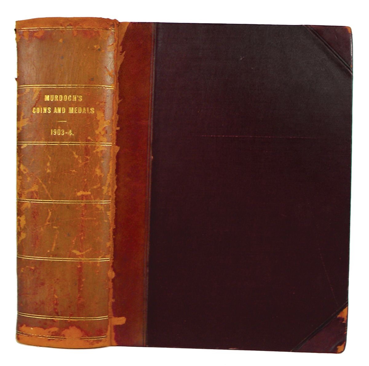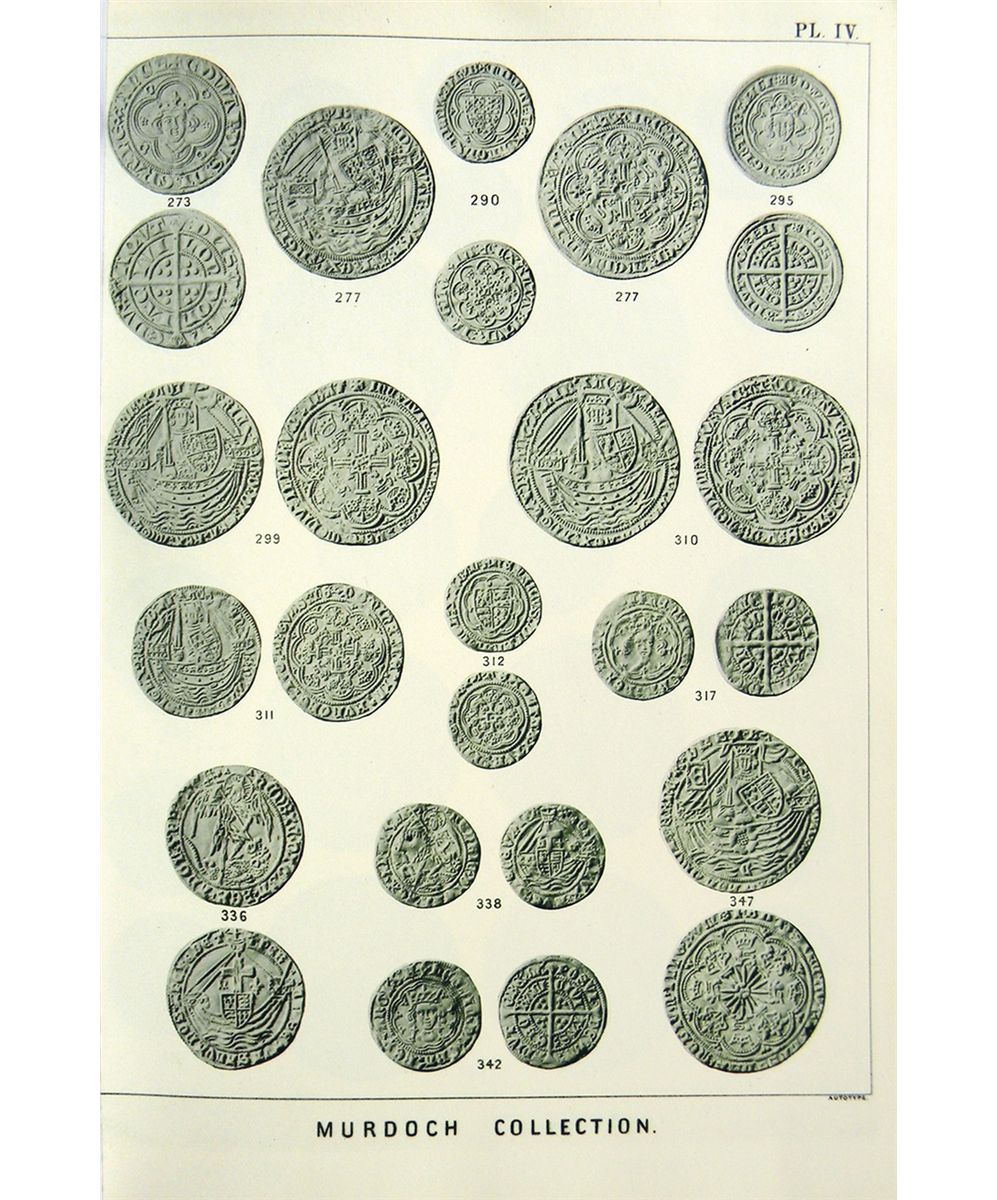 Sotheby, Wilkinson & Hodge. CATALOGUE OF THE VALUABLE COLLECTION OF COINS AND MEDALS, THE PROPERTY OF THE LATE JOHN G. MURDOCH, ESQ. THE SERIES OF ANCIENT BRITISH, ANGLO-SAXON, ENGLISH AND IRISH COINS AND TOKENS. FIRST, SECOND, THIRD & FOURTH PORTIONS. THE SERIES OF SCOTTISH AND ANGLO-GALLIC COINS. THE COINS AND TOKENS OF THE BRITISH COLONIES AND DEPENDENCIES, AMERICA AND THE EUROPEAN CONTINENT. THE SERIES OF ENGLISH HISTORICAL MEDALS, FROM HENRY VI TO VICTORIA. London, 1903-04. Eight catalogues complete, bound in one volume. Crown 4to, contemporary red half calf, gilt; original printed wraps bound in. Approximately 800 pages; 5386 lots; superb frontispiece portrait of Murdoch; 85 very fine autotype plates of coins, medals and tokens. Cumulative 36 page prices realized list bound in at the beginning. Binding rubbed and a bit worn, but sound. Contents near fine. The complete series of eight Murdoch sales, one of the most important collections of English coins and medals ever formed. Included among them is the July 21-30, 1903 catalogue, which comprises one of the most important foreign sales of rare American coins, featuring colonials, pioneer gold, United States coins in gold, silver, and copper, patterns, Canadian coins and tokens, etc. Clain-Stefanelli 6145*, 6146, 11276 & 14708. Grierson 298: "Collection d'une importance exceptionelle." Manville & Robertson 1903: 18, 25, 32, 43 & 1904: 11, 26, 57 & 58 (pages 201-206).