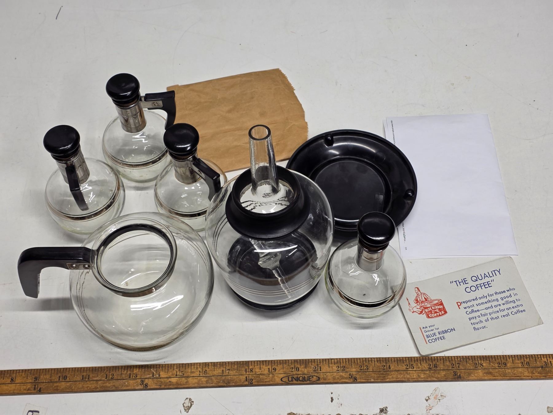 Complete Original Vintage "Pyrex" Coffee Drip + 4 Carafes