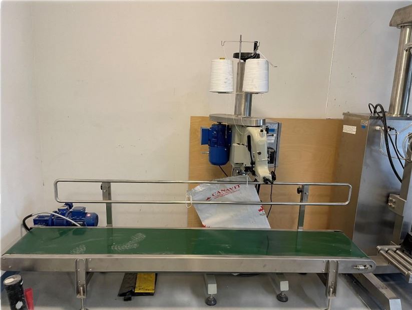with 2.4m belt conveyor Technical parameters Sewing speed:2000r.p.m Sewing thickness:8mm Stitch adjusting range:6.5 11mm Height adjustment method: handwheel adjustment Braided line cutter form: electronic pneumatic Sewing stitch forms: double chain.
