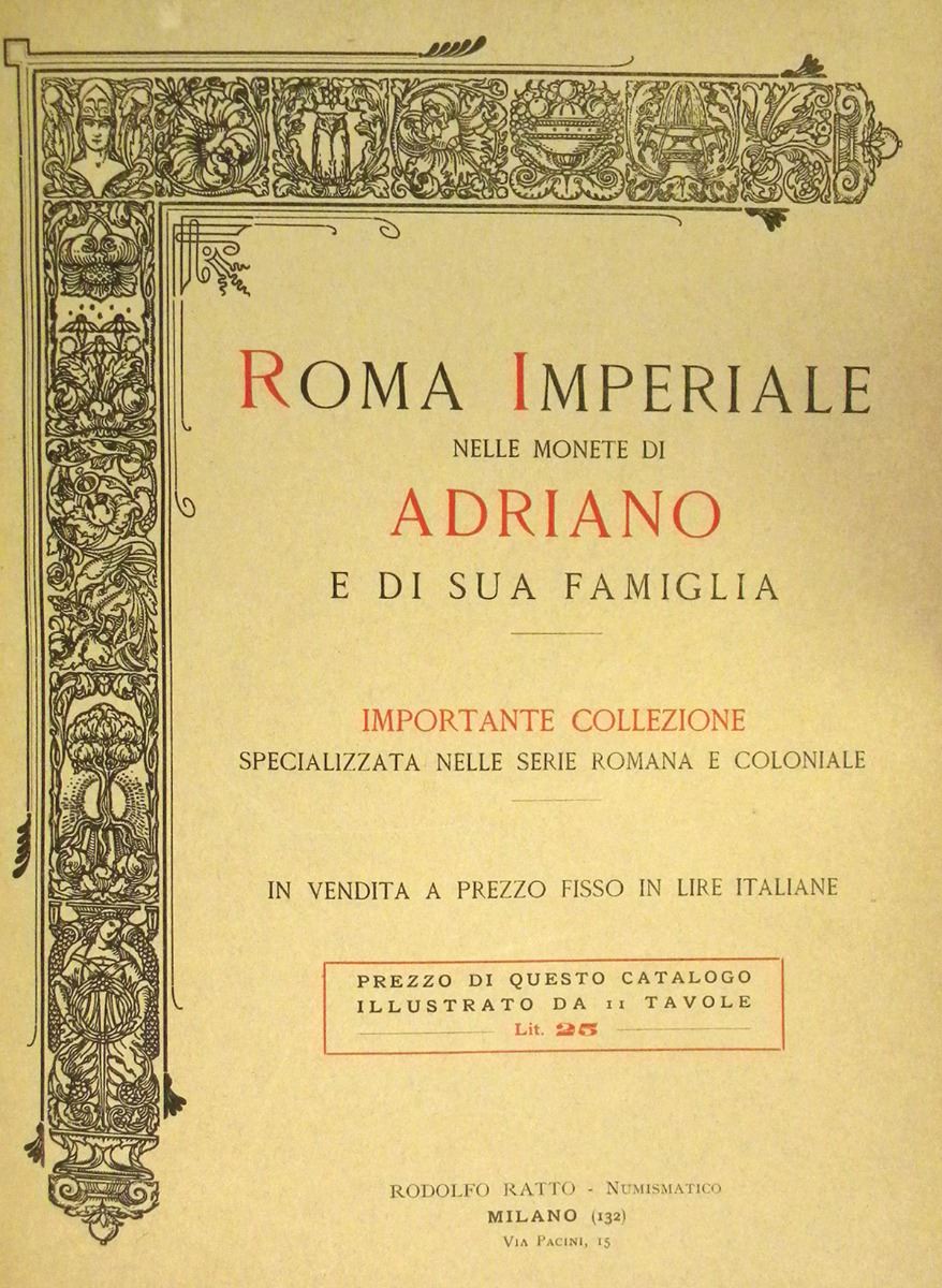 Ratto, Rodolfo. VENDITE A PREZZO FISSO. Bound volume of 23 numbered fixed-price catalogues. Milano, 1931-39. 4to, later brown quarter leather, gilt, and textured boards; original printed wraps bound in. Binding a little weak. One or two catalogues with some spotting; six plates with coins cut; most catalogues essentially fine. See catalogue for full description.