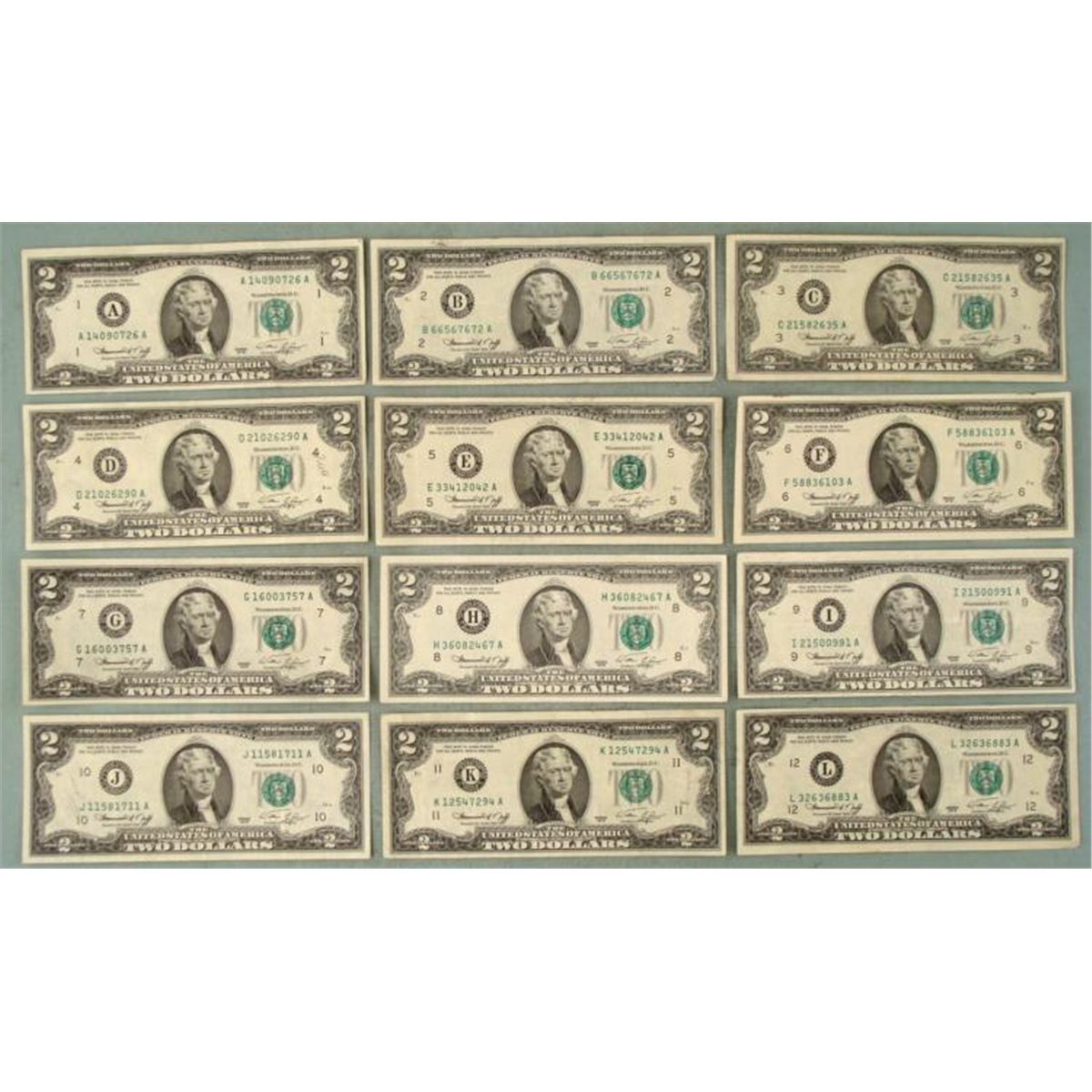 Complete set with All 12 Mint Marks of the 1976 $2 bill * Condition: XF-UNC Mint marks: A, B, C, D, E, F, G, H, I, J, K, L *