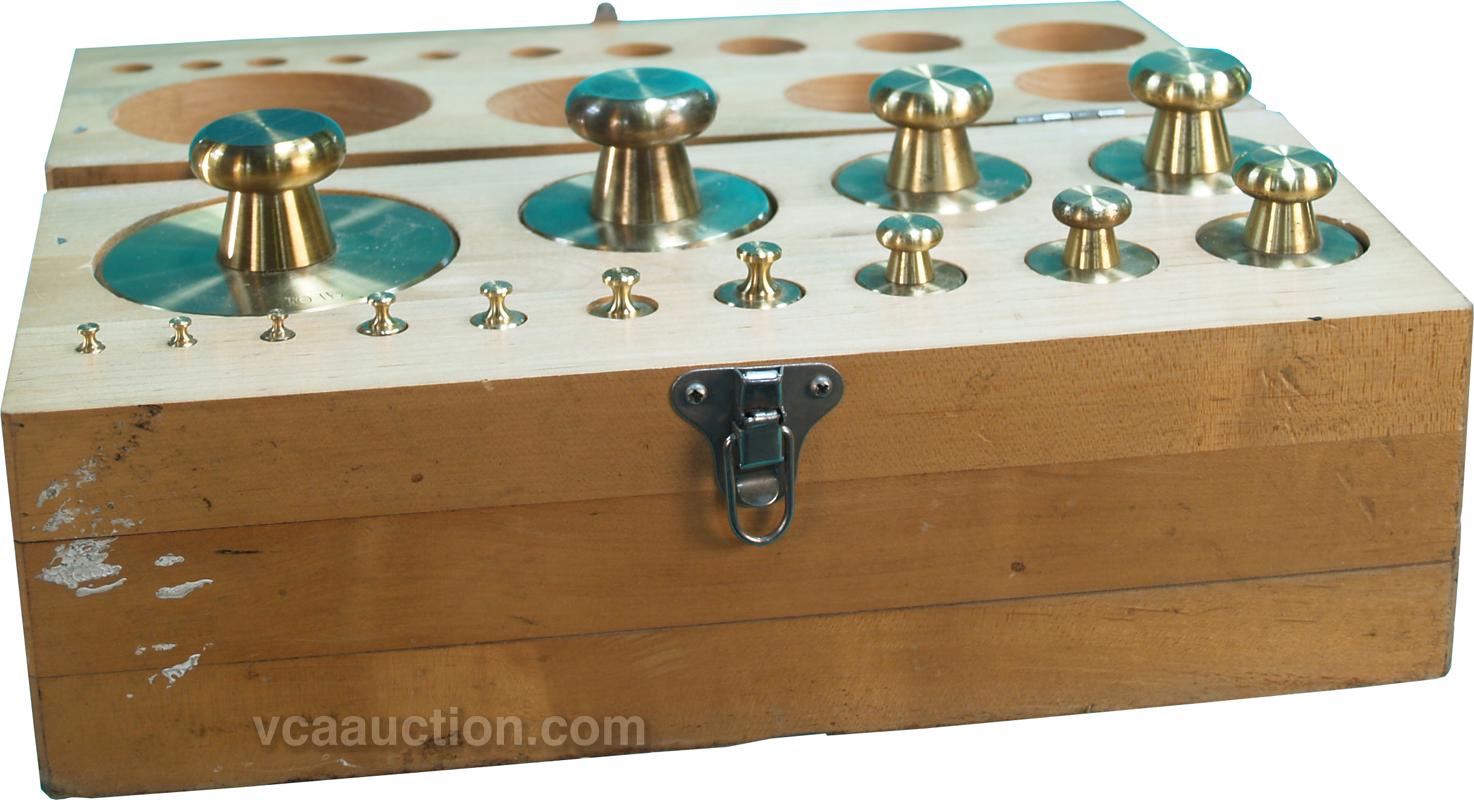 Complete Set Of Brass Weights In Original Wooden Box MFG by Ohaus- Union, NJ. USA.