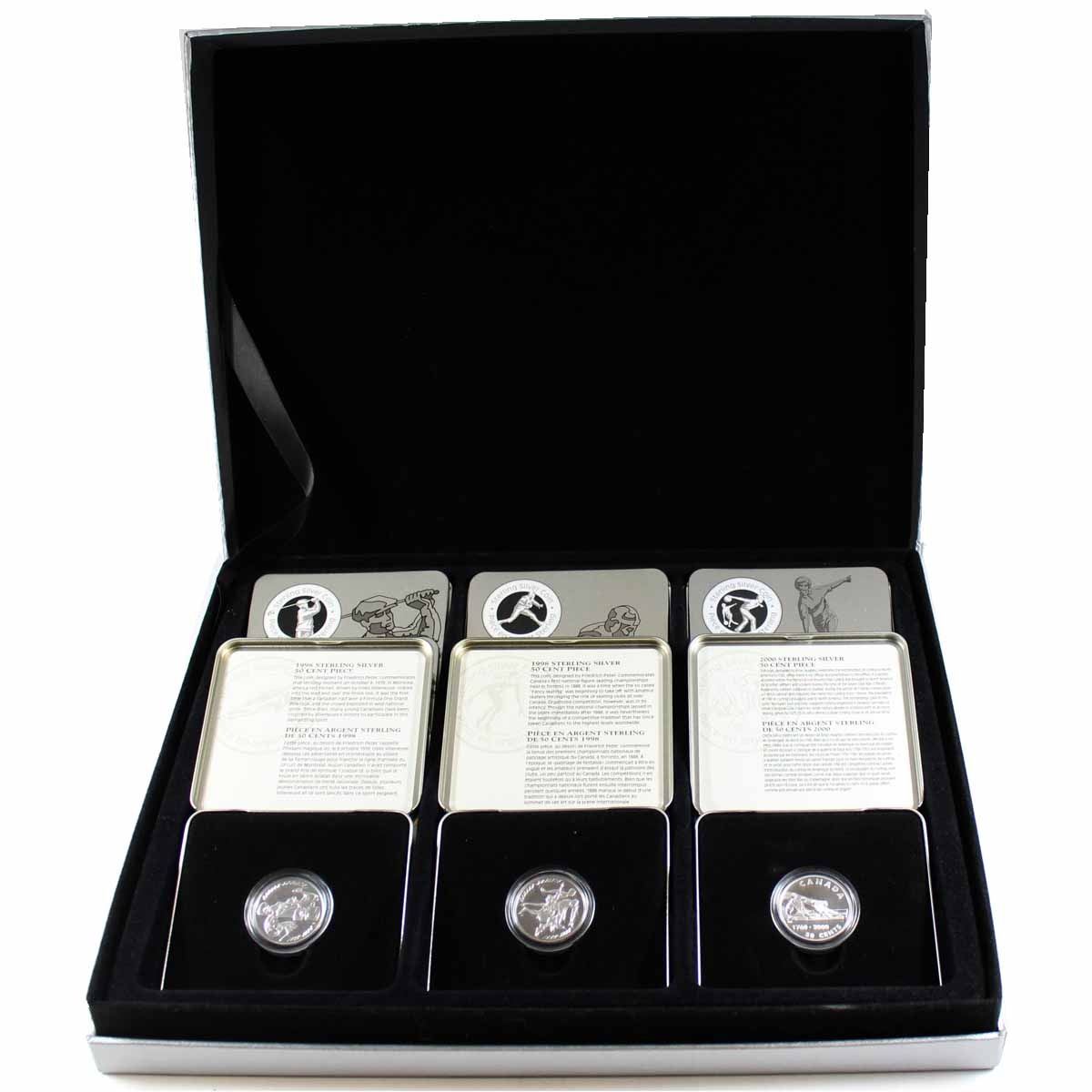 Complete Set of 12x 1998-2000 Canada 50-cent Sterling Silver Sports Coins in Official Royal Canadian Mint Display Cases Inside Large Display Case. 12pcs