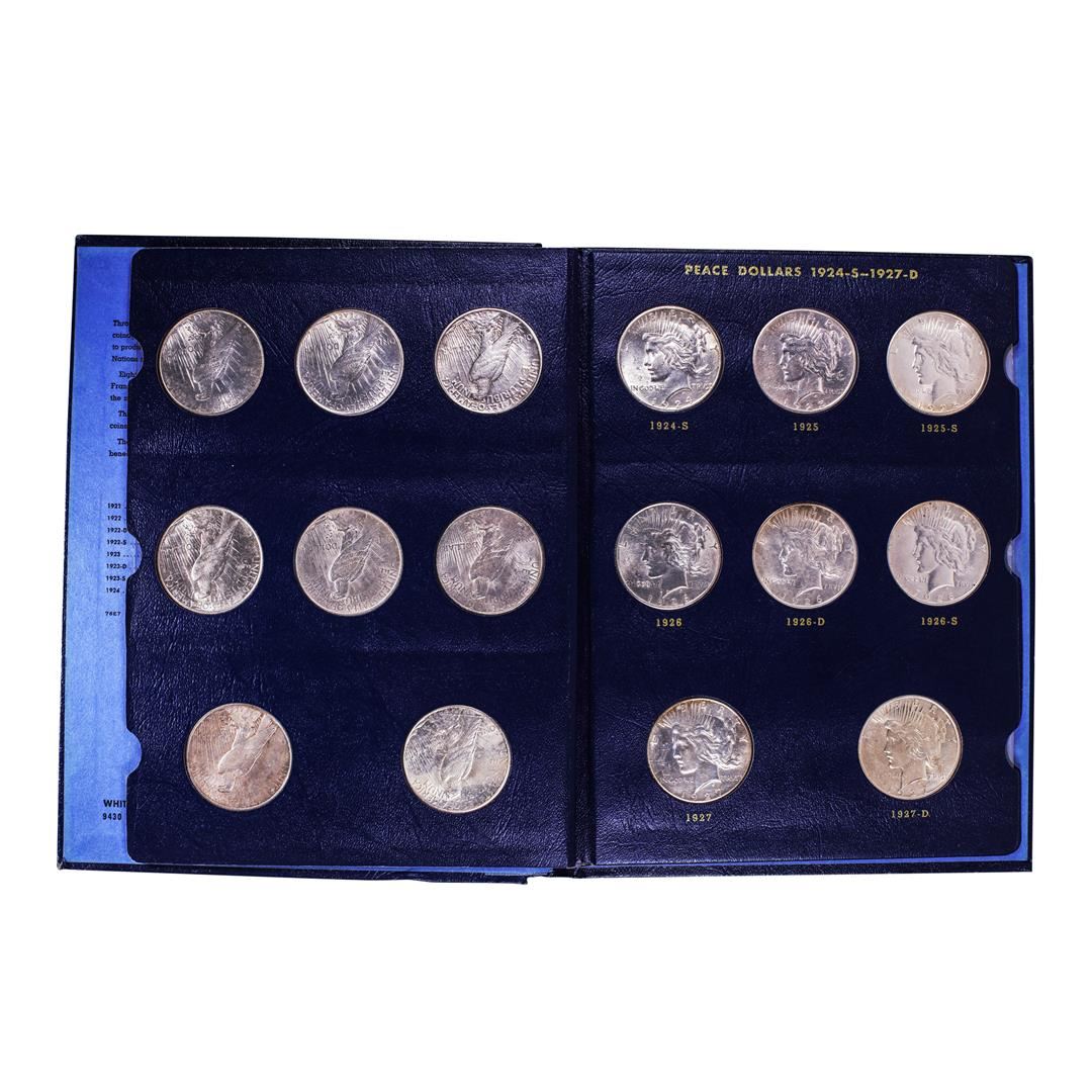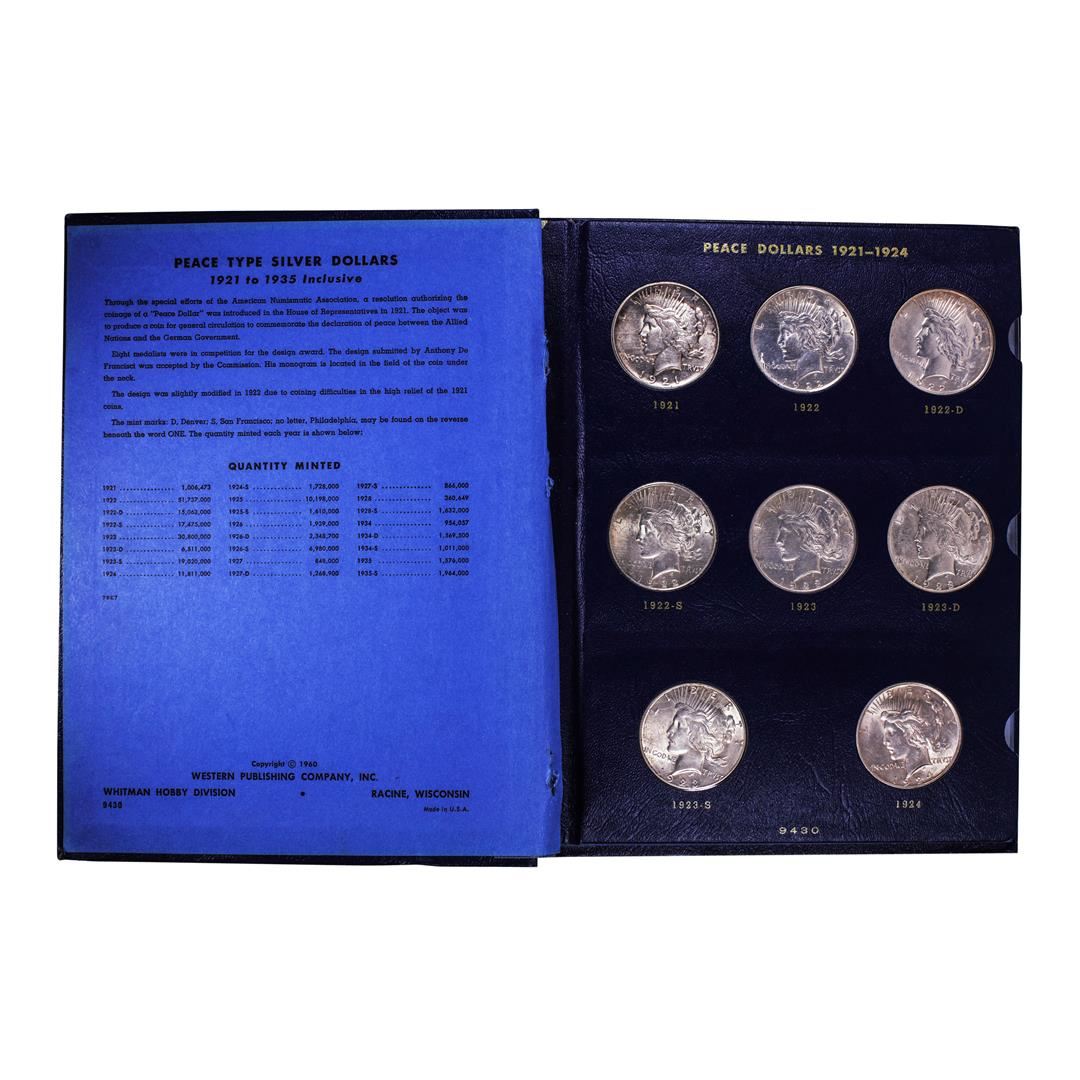 One Complete Set of 1921-1935 $1 Peace Silver Dollar Coins in Whitman Album.