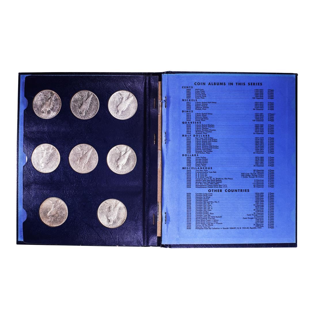 One Complete Set of 1921-1935 $1 Peace Silver Dollar Coins in Whitman Album.