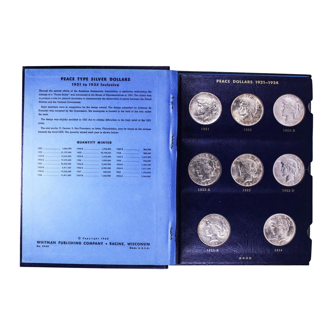 One Complete Set of 1921-1935 $1 Peace Silver Dollar Coins in Whitman Album.