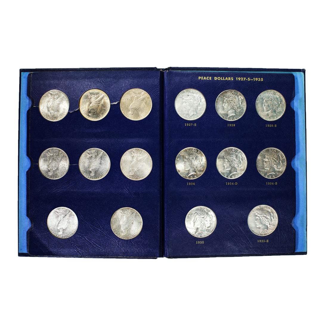 One Complete Set of 1921-1935 $1 Peace Silver Dollar Coins in Whitman Album.
