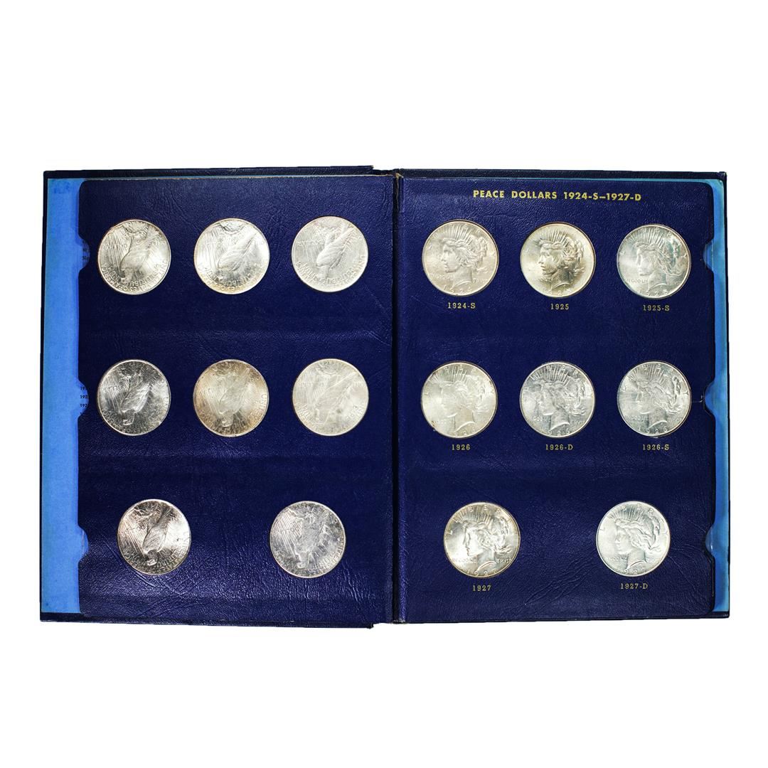 One Complete Set of 1921-1935 $1 Peace Silver Dollar Coins in Whitman Album.
