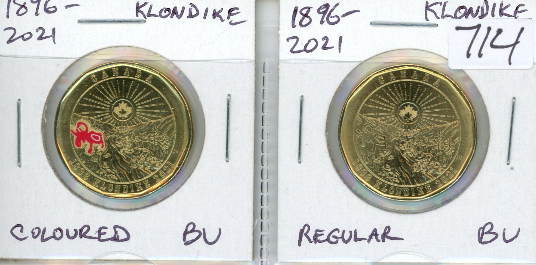 Complete Set of 2 1896 – 2021 Klondike Gold Rush Loonies. Includes Coloured & Regular. Brilliant Uncirculated from original rolls.