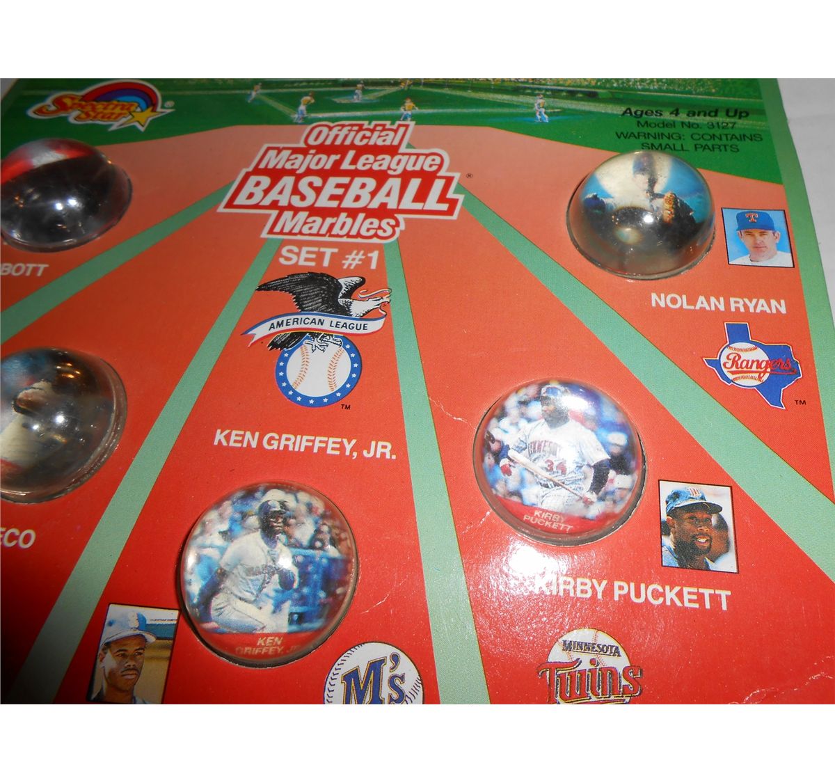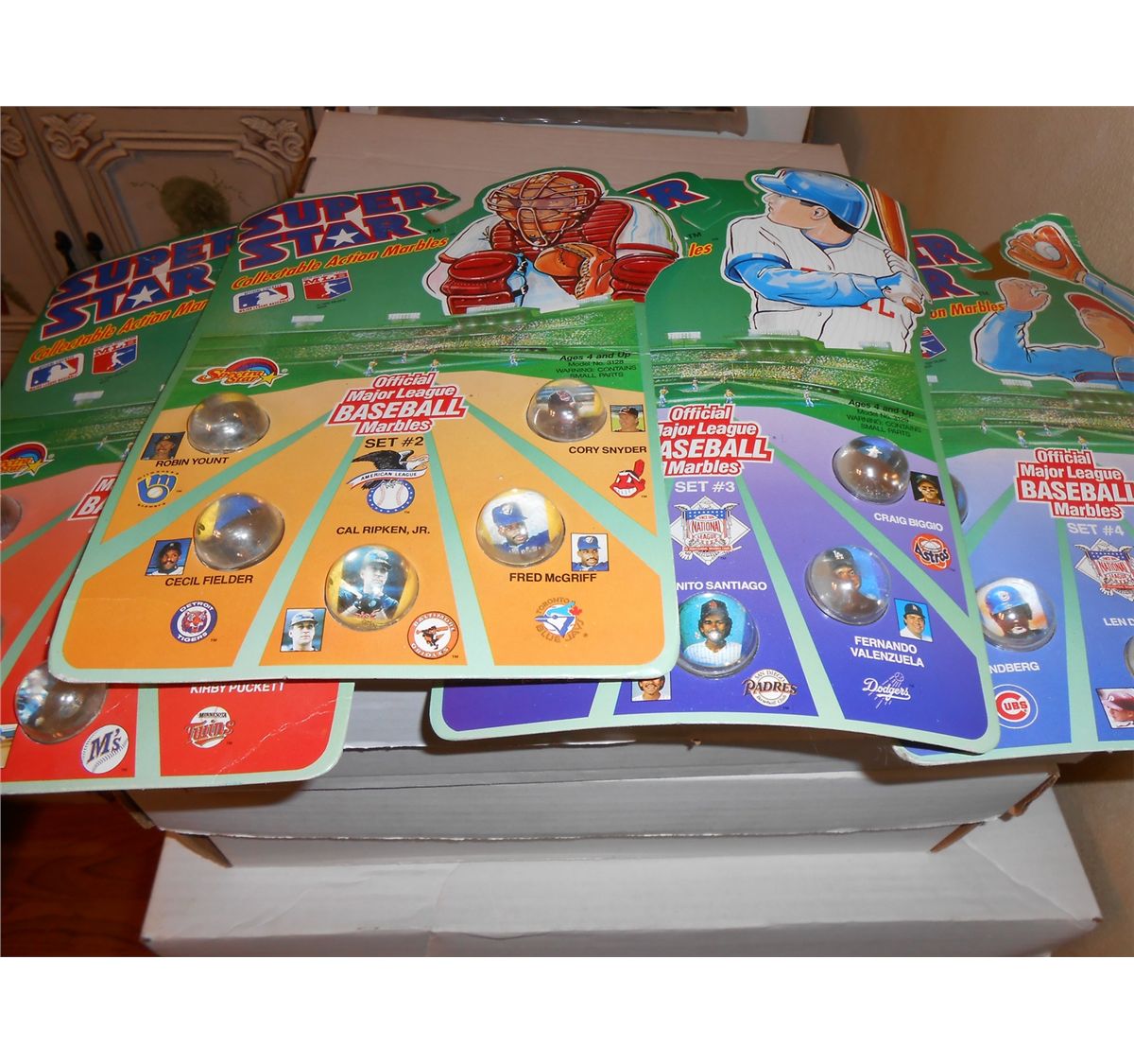 Complete Set of (20) Baseball Superstar Action Marbles. This complete set consists of (4) packages of (5) Superstar Marbles. This lot is for all (4) Unopened Packages. Superstars included in these unique collectibles are: Nolan Ryan, Ken Griffey Jr., Cal Ripken, Kirby Puckett, Jose Canseco, Craig Biggio, and many more.