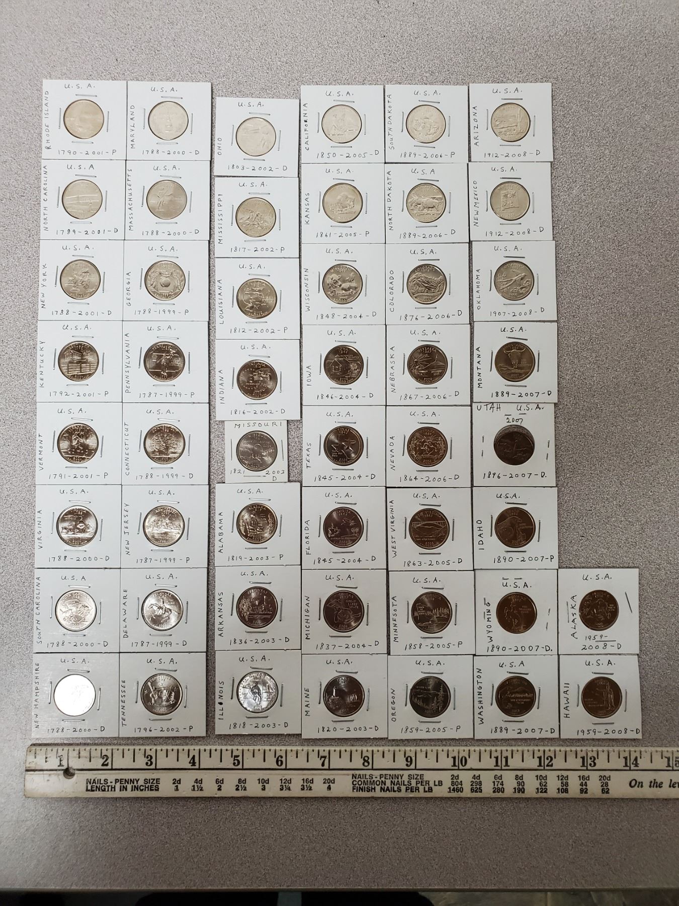 Complete Set of 50 U.S. States Quarters 1999 – 2008. Various Mints. All BU.