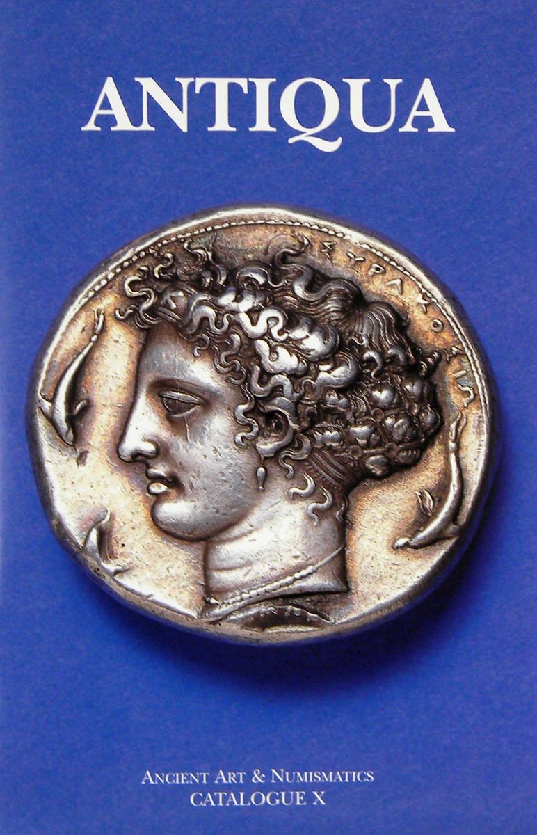 Antiqua [Steve L. Rubinger]. ANTIQUA: ANCIENT ART & NUMISMATICS. Eighteen catalogues, complete, as numbered I-XVII plus IA. Woodland Hills, 1994-2013. 8vo, all in the original card covers or self-covered as issued. Fine. A nicely produced series of catalogues offering many beautiful ancient coins and antiquities. Sets are infrequently offered.