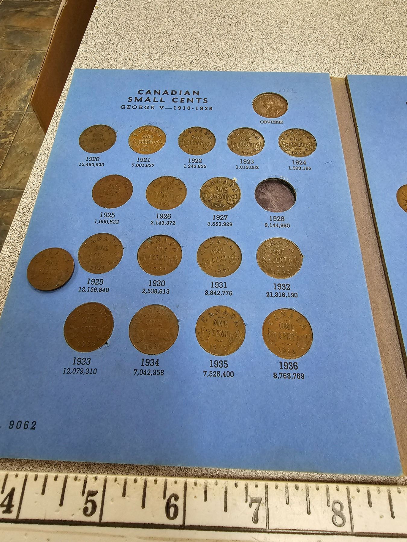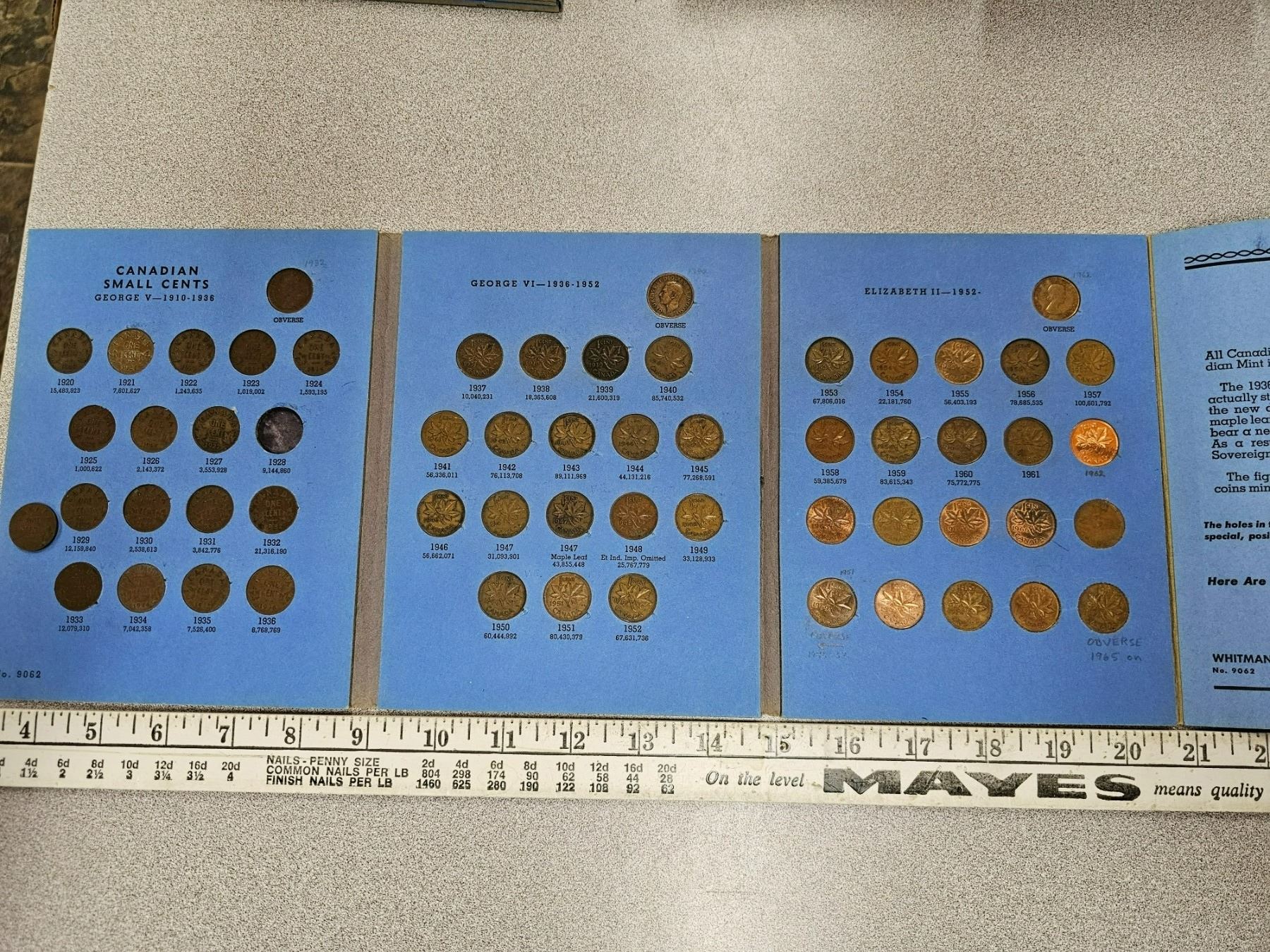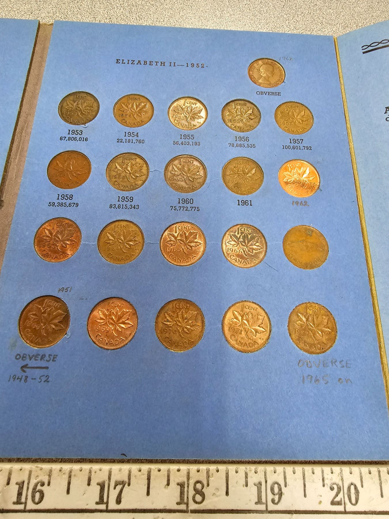Complete Set of Canadian Small Cents 1920 to 1972. Includes the Key Dates 1922, 1923, 1924, 1925 & 1926. Housed in a blue Whitman folder.