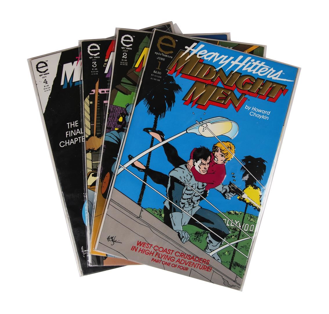 One complete set of Heavy Hitters Midnight Men by Howard Chaykin. This complete set is from epic comics and contains issues #1-4.