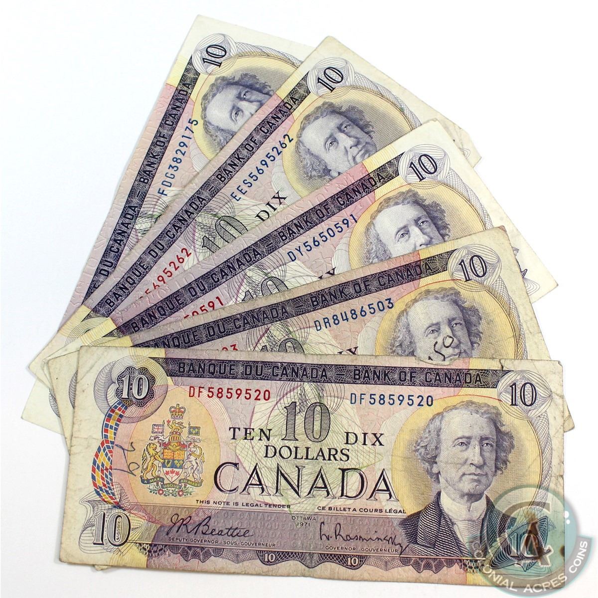 Complete Signature Type Set of the 1971 $10.00 Notes. Included are Five 1971 $10.00 Notes, on of each Signature Combination available in the Series. 5 pcs.