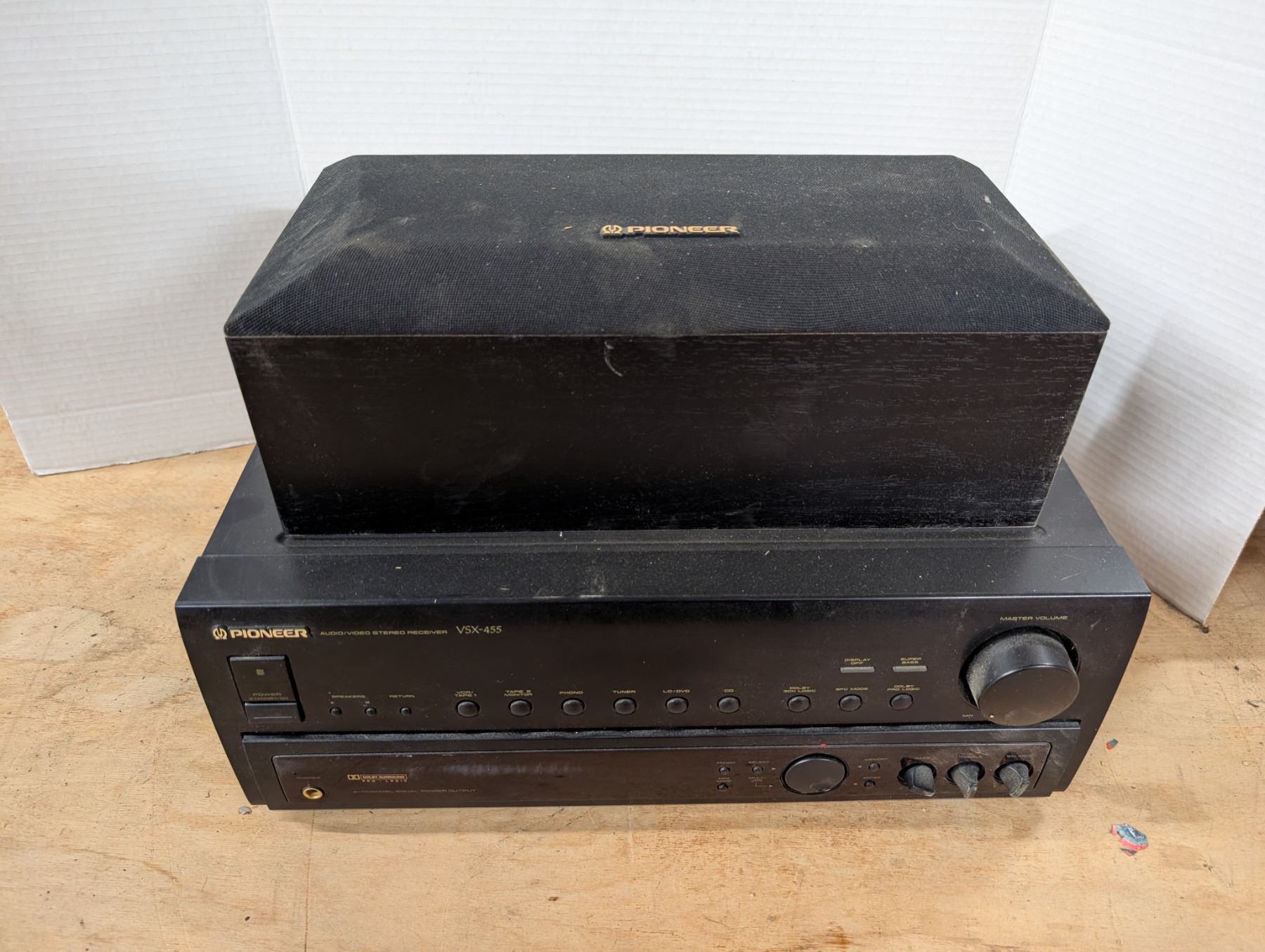 Pioneer Speaker and Audio/ Video Stereo Receiver VSX-455 (not Tested) , (3) Pioneer Speakers HTP300-F (not Tested), HTP300-SW Subwoofer Pioneer (not Tested)