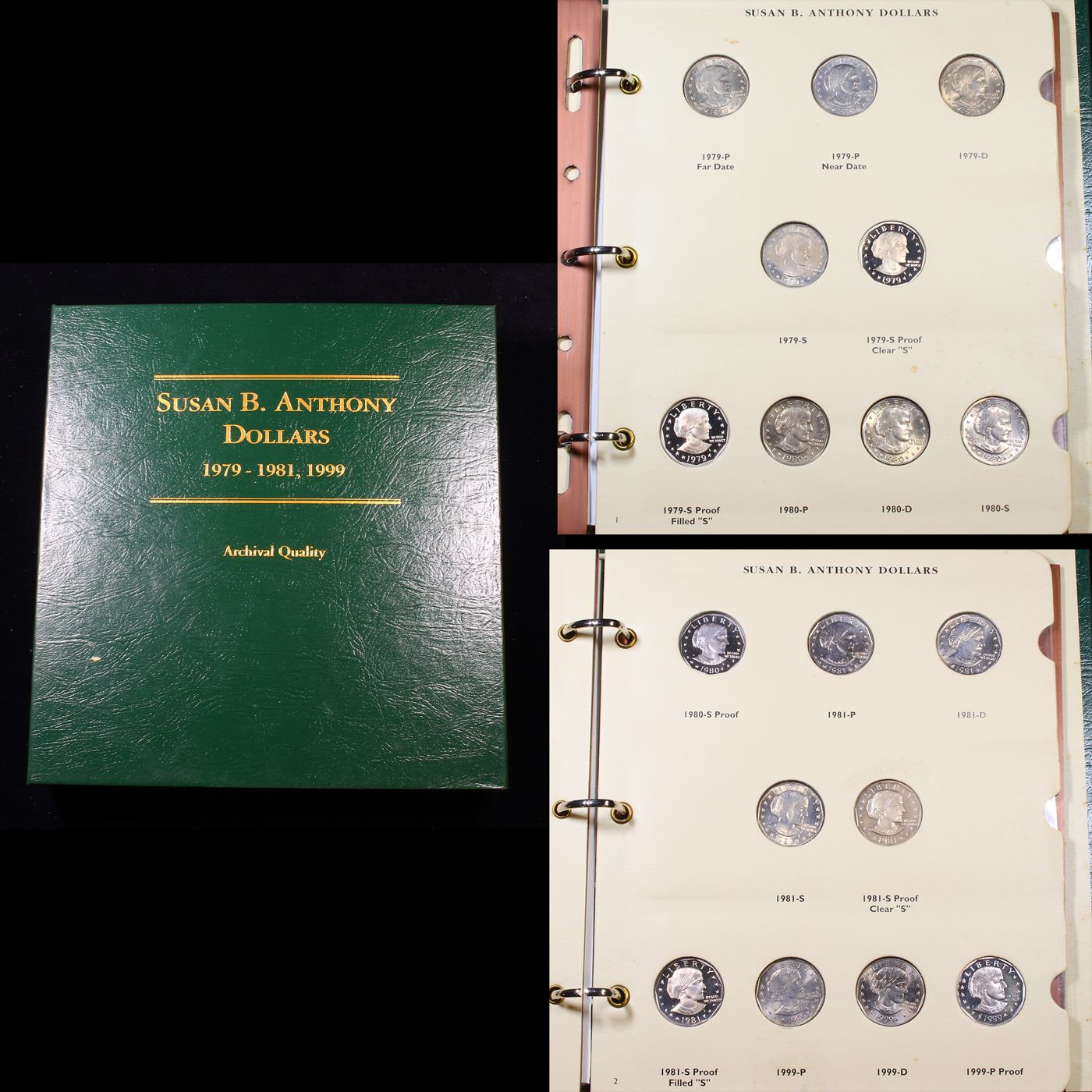 Complete Susan B. Anthony Dollar Book 1979-1999 18 coins. A Nice complete Susan B. Anthony Dollar Book. Dates includes 1979-1999. An Excellent grouping of 18 coins. Includes all the Proofs