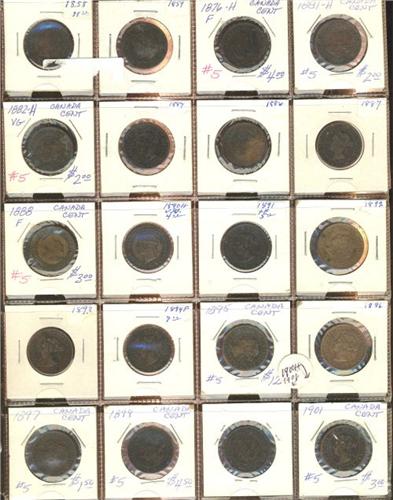 Complete "Victorian" set! Dates are from 1858 to 1901. One of each date is included except the 1898H. Grades vary from VG to VF. 20 pieces.