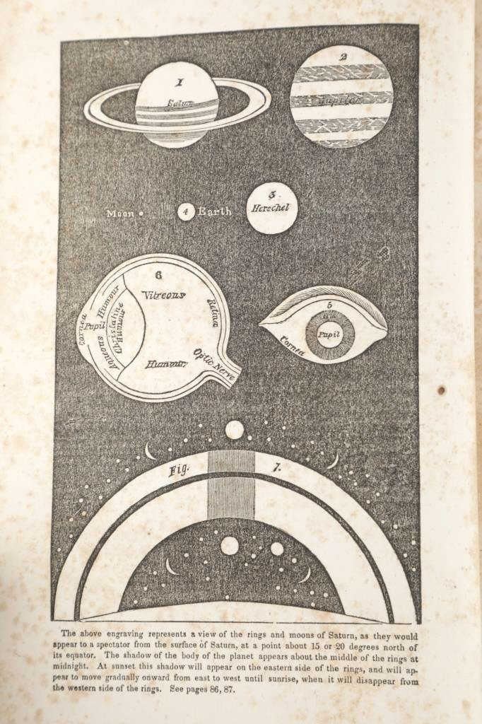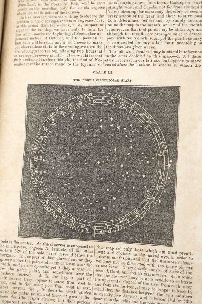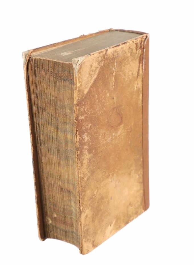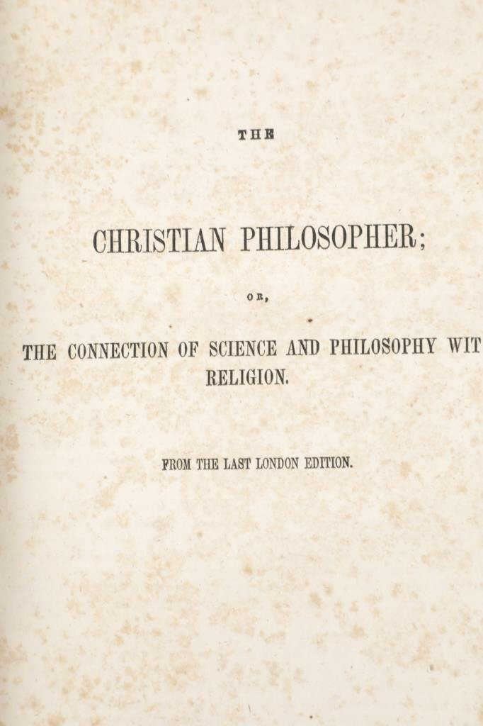 Featured in this lot is this 1854 edition of, "The Complete Works of Thomas Dick, LL. D. : Eleven Volumes In Two" by Thomas Dick, published by Applegate & Company in Cincinnati in 1854. The Complete Works of Thomas Dick, LL.D.: Eleven Volumes in Two is a collection of writings by Thomas Dick, a 19th-century Scottish philosopher known for exploring the connections between science, religion, and morality. The works cover topics like astronomy, natural philosophy, and theology, presenting them in an accessible way to show the harmony between scientific discoveries and Christian beliefs. Dick’s writings were popular for their blend of scientific knowledge and moral reflection, appealing to a wide audience during his time. The book shows a brown leather hard cover and shows marble edged pages. The book shows wear consistent with its age and use over the years, with foxing and staining present. No major signs of damage is noted. The book measures 9 5/8" L x 6 1/2" W x 2 5/8" D and weighs 2 pounds and 12 ounces.