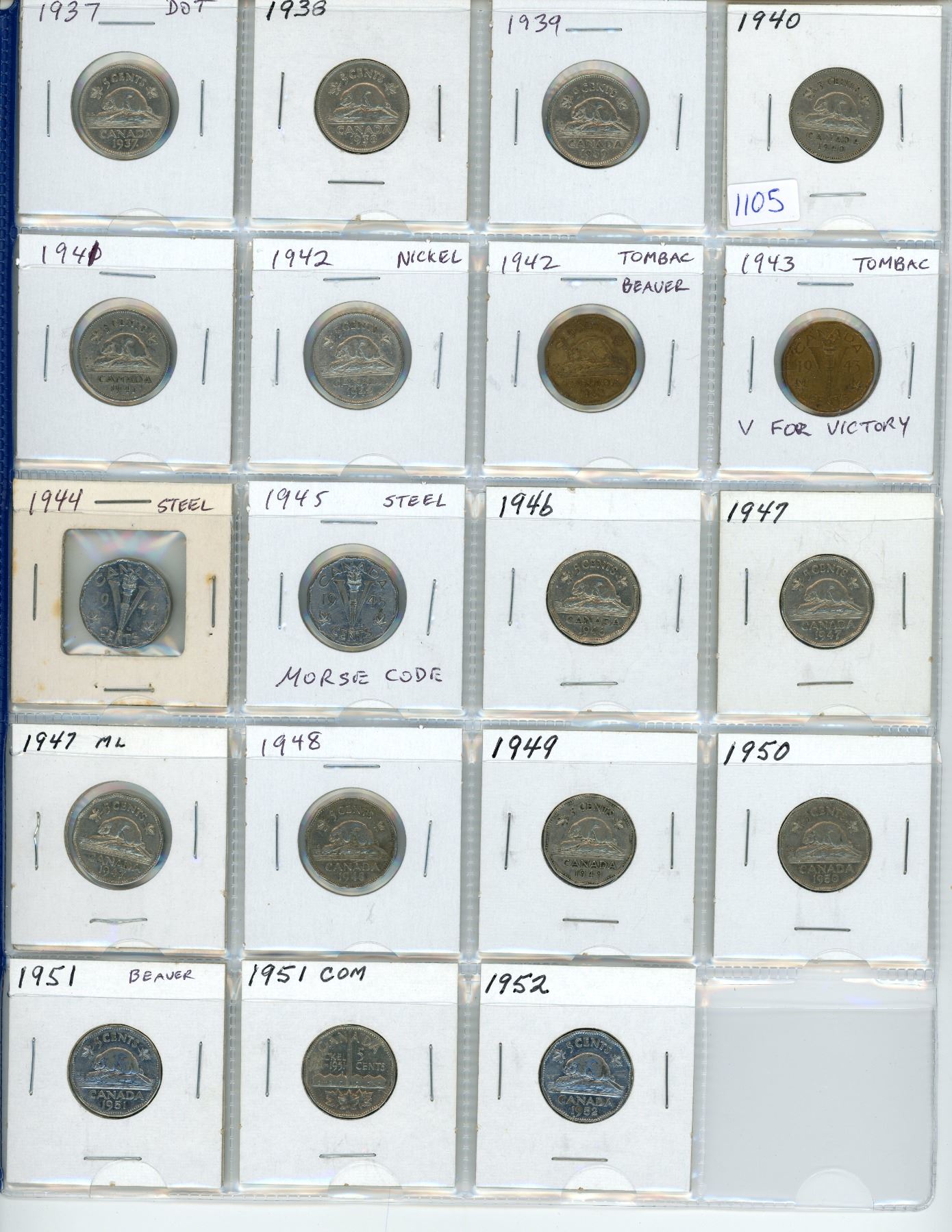 Complete Year Set of Canadian George VI Nickels 1937 – 1952. Includes Tombacs, Steel etc. Various grades.