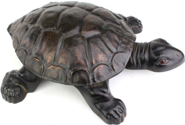 by stepping on head opens lid, good paint, 14" long. Est. 300-500