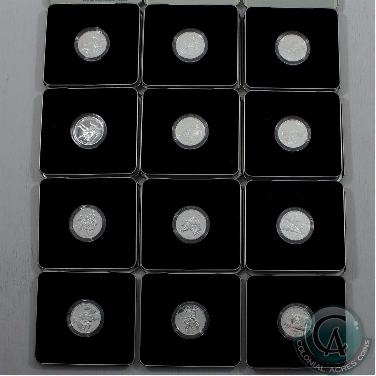 Complete set 12 x 1998-2000 Canada 50-cent Sterling Silver Sports Coins in Official Royal Canadian Mint Display Cases (Some metal cases have minor nicks/scratches) 12pcs