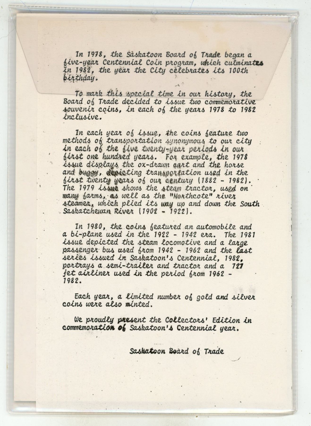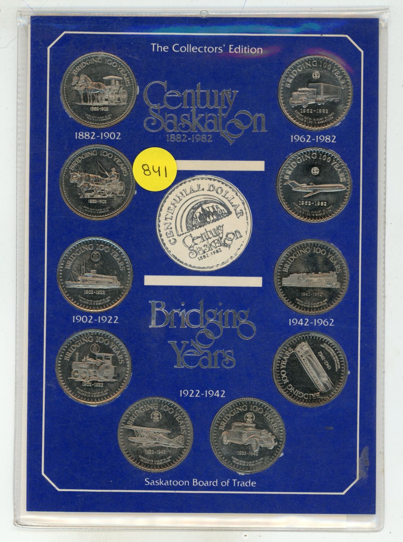 Complete set of 10 Saskatoon Trade Dollars from 1978 to 1982. Collector’s Edition. Issued by the Saskatoon Board of Trade.