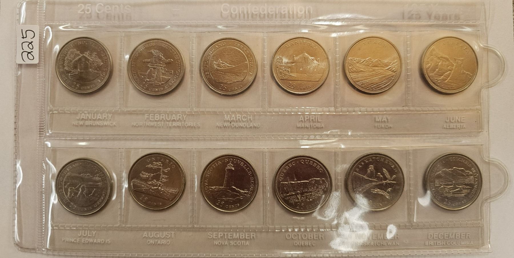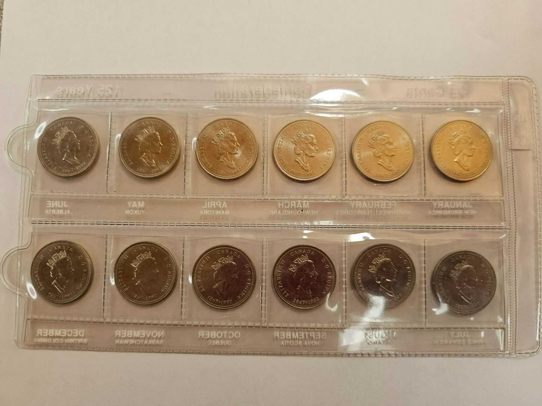 Complete set of 12 1992 Canadian Provincial & Territorial 25 Cents.