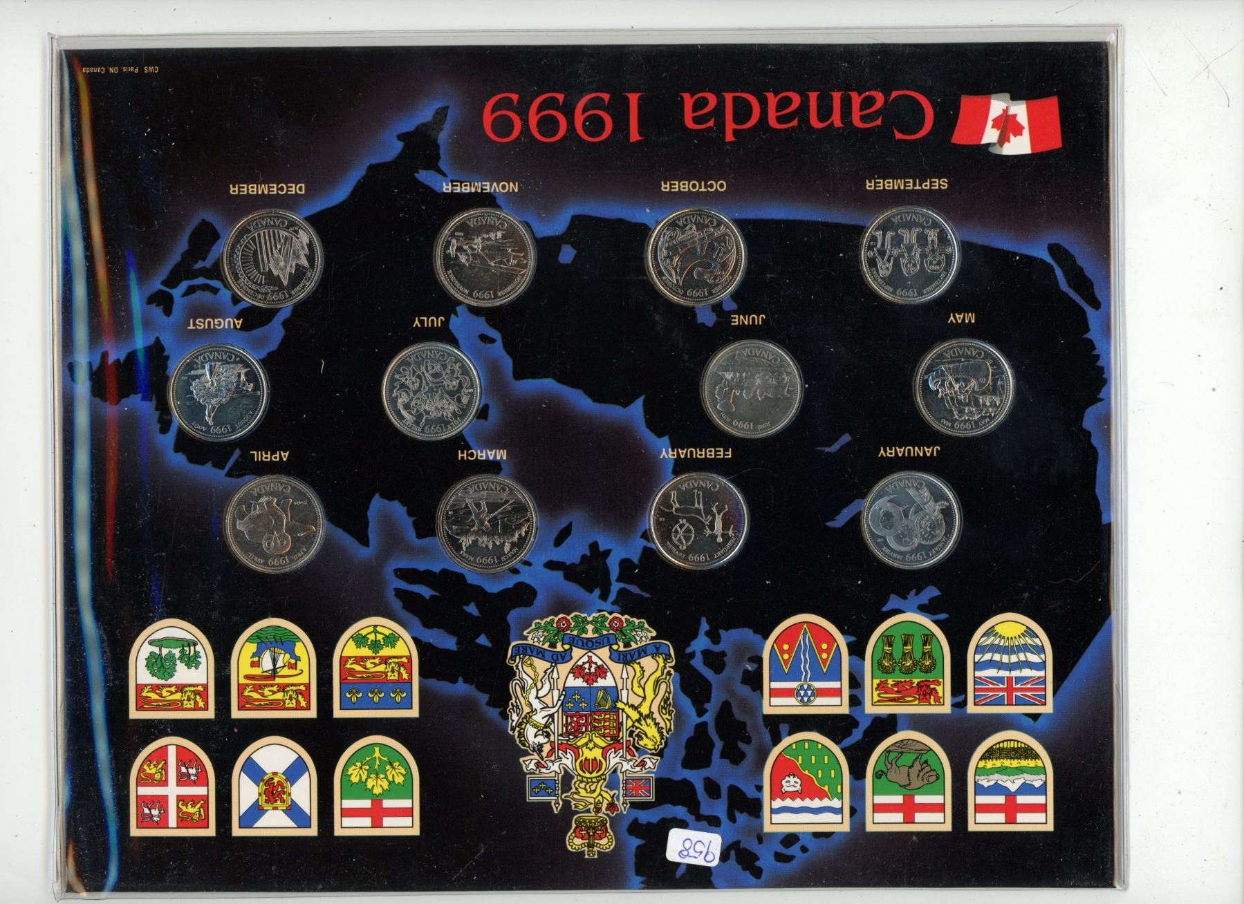 Complete set of 12 1999 Canadian 25 Cents. One for each month. As issued.