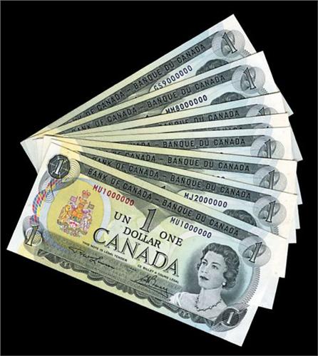 Complete set of 1973 $1 1000000 to 9000000. All 9 notes are Unc. To Gem unc.