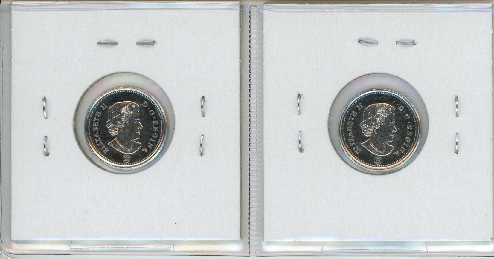 Complete set of 2 1921 – 2021 Bluenose Commemorative 10 Cents. Colourized & Regular. BU from an original Royal Canadian Mint roll.