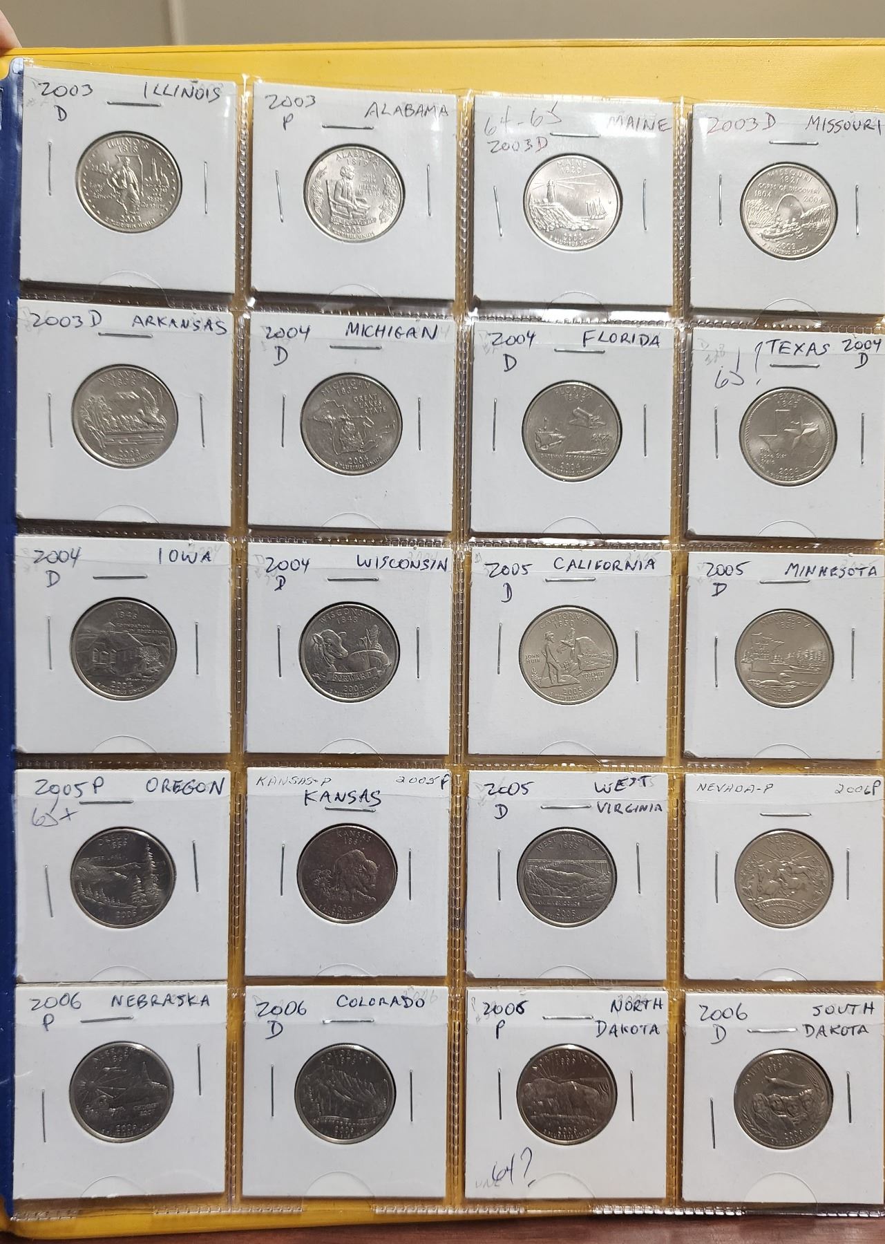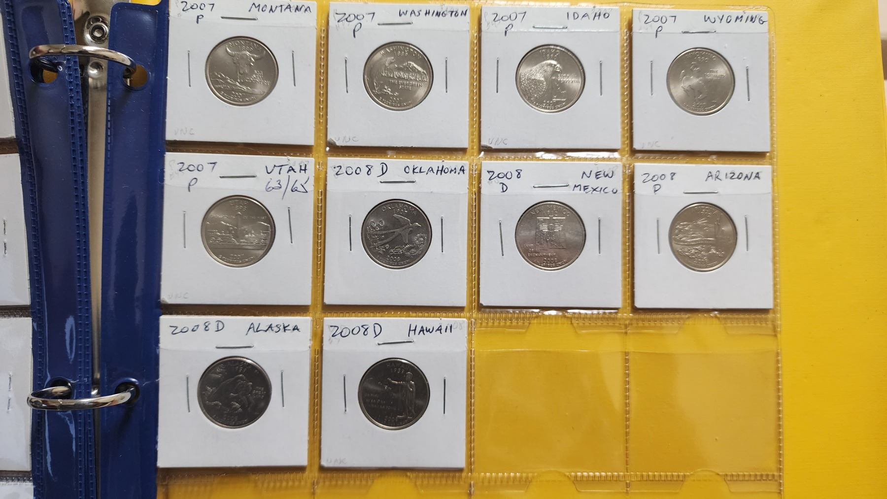 Complete set of 50 U.S. States Quarters. 1999 – 2008 complete. Mixture of Denver & Philadelphia Mint Marks. Housed in a 3-ring binder. Uncirculated.
