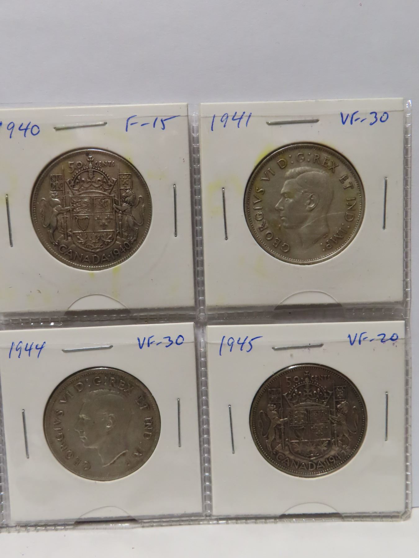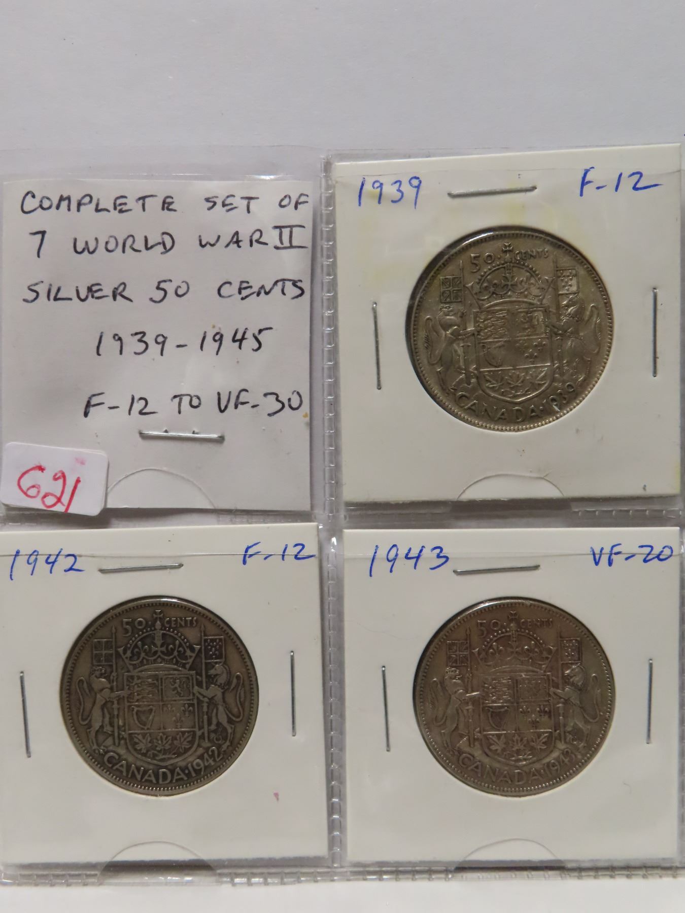 Complete set of 7 world war II silver 50 cents(1939-1945) (F-12 to VF-30)