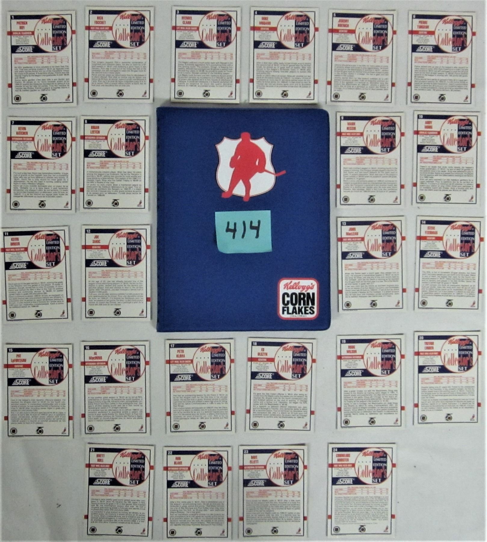 Complete set of j24 1990-91 Kellogg's limited edition SCORE NHL card set and display album