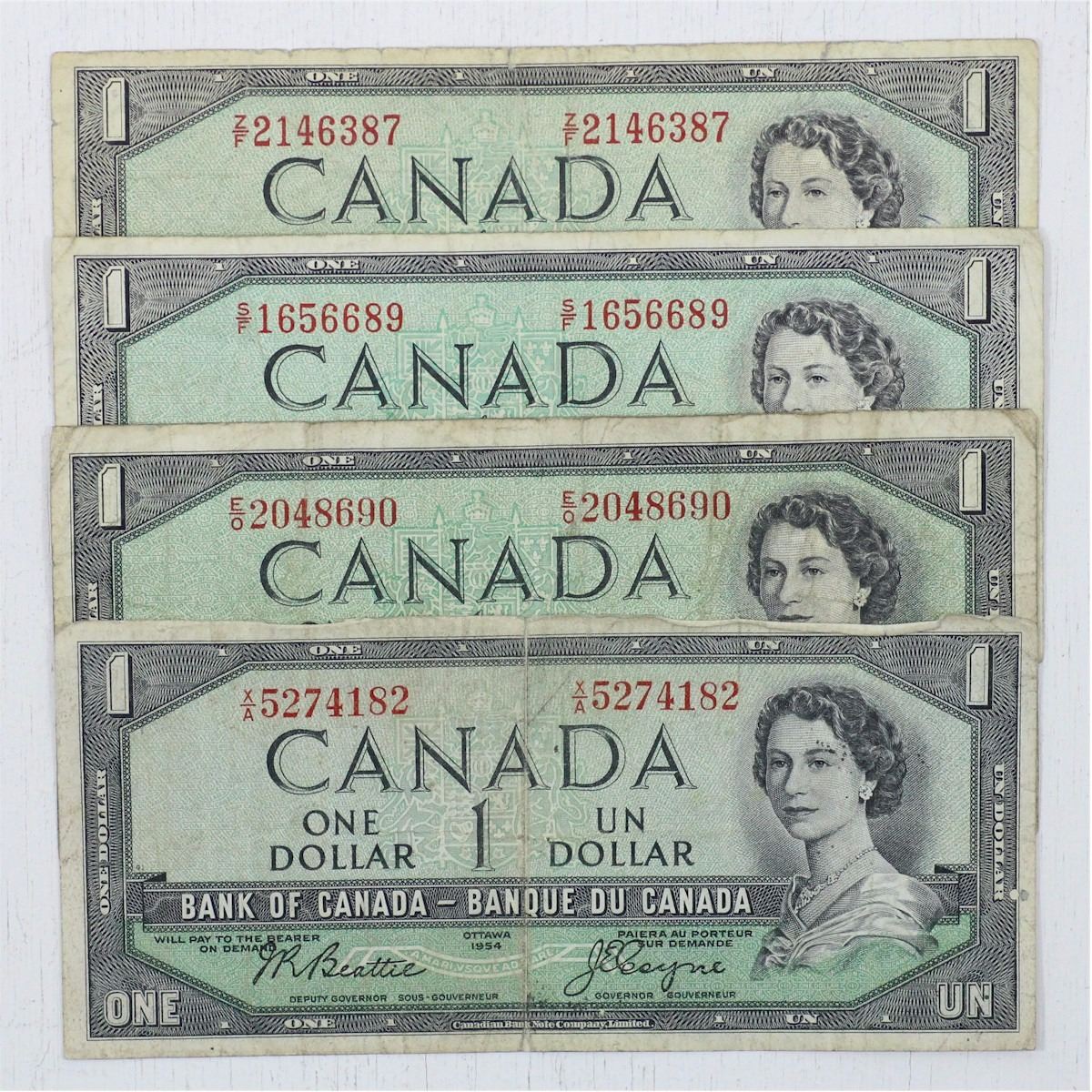 Complete signature type set of the 1954 $1.00 series. You will receive 4 notes, one of each signature combination available in the series