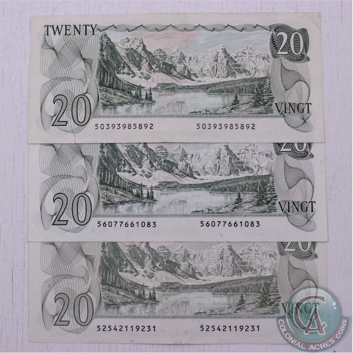 Complete signature type set of the 1979 $20.00 note in average circulated condition. You will receive three 1979 $20.00 notes; one of each signature combination available in the series.