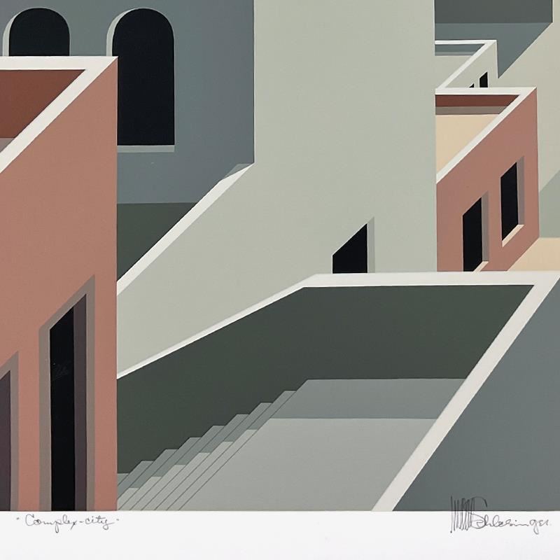 "Complex City" is a limited edition serigraph on paper by William Schlesinger (1915-2011), AP numbered I/XXV and hand signed by the artist. Includes Letter of Authenticity. Measures approx. 30.5" x 25.5" (border), 25.5" x 20" (image). ** Please note: Ther