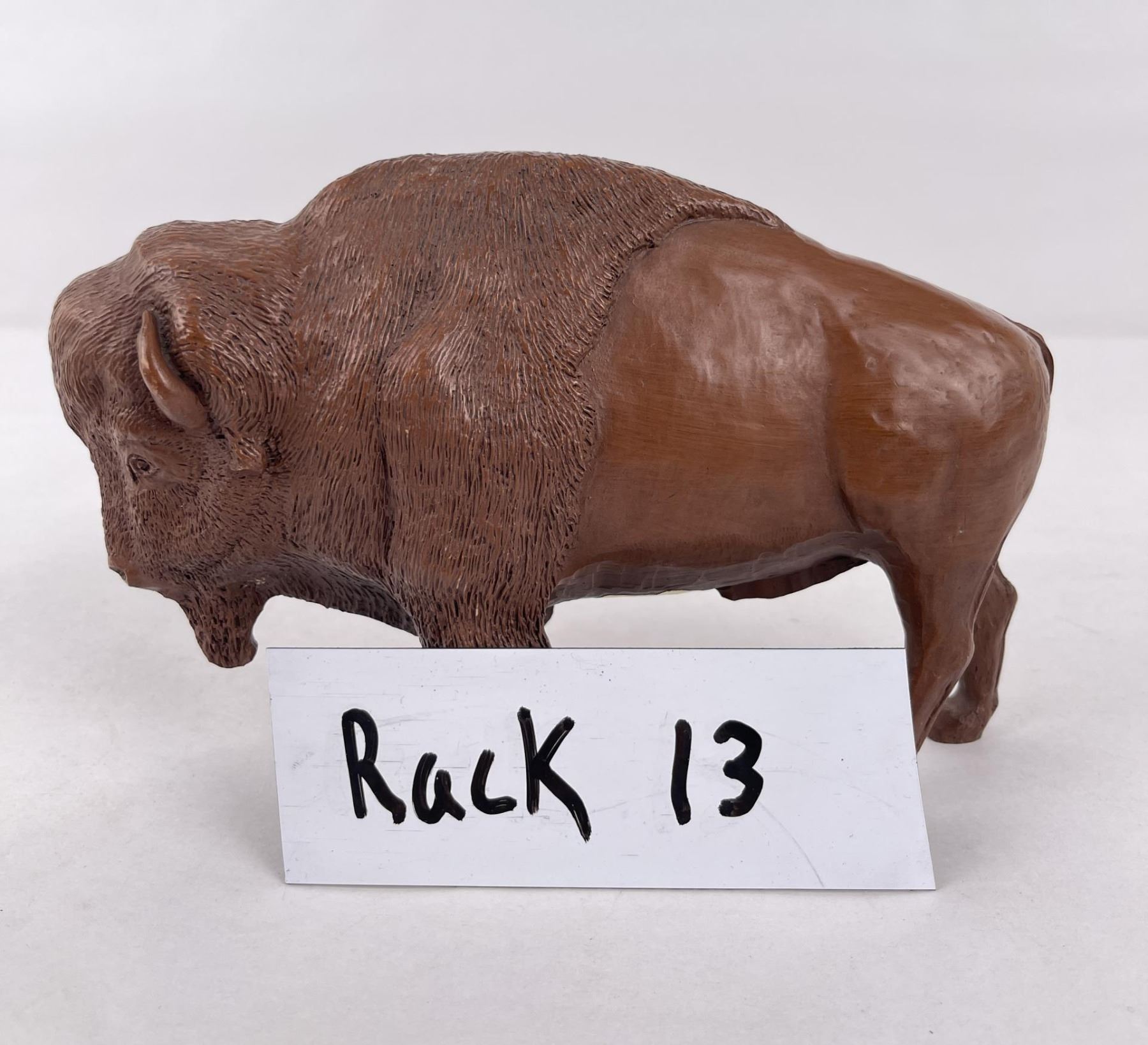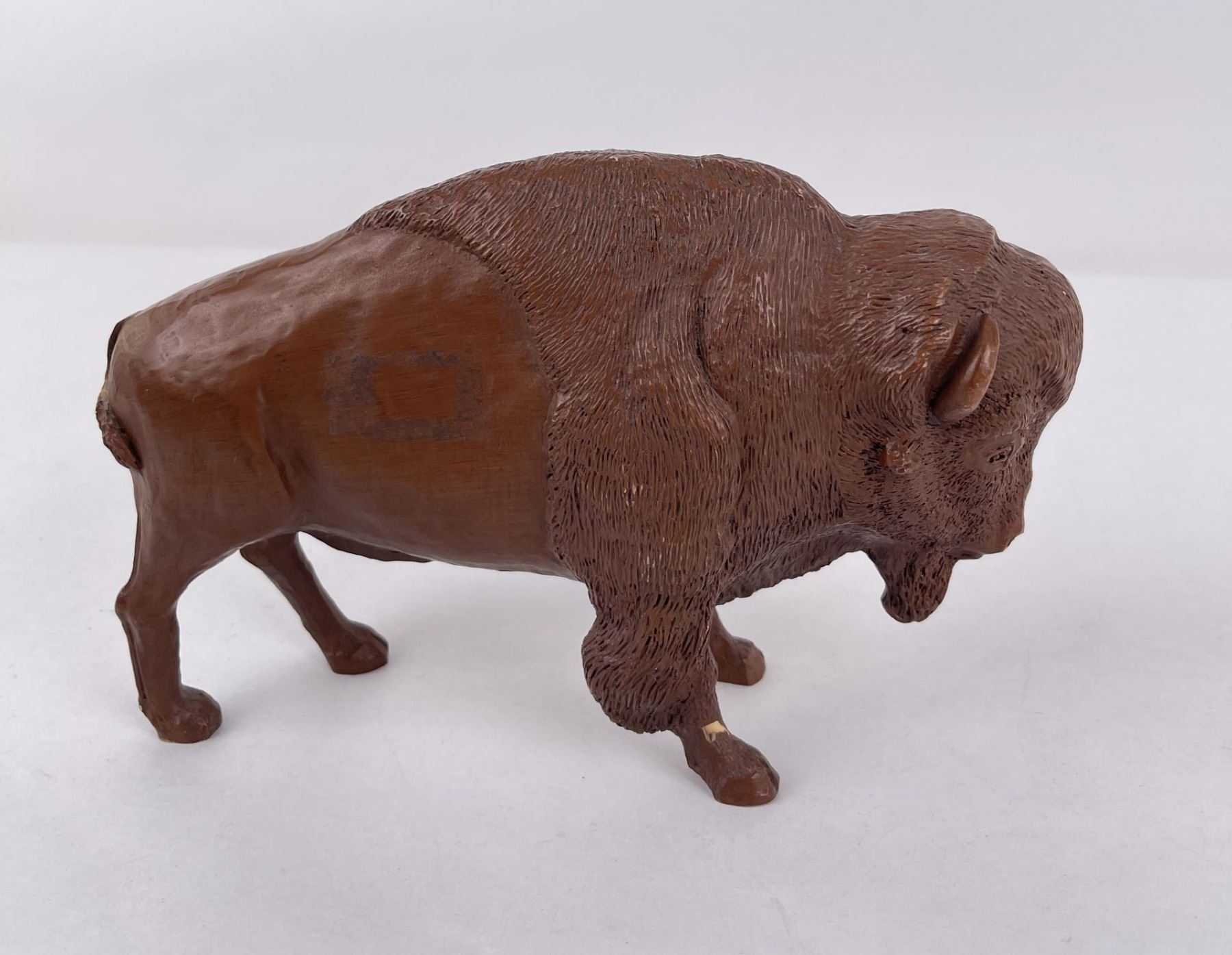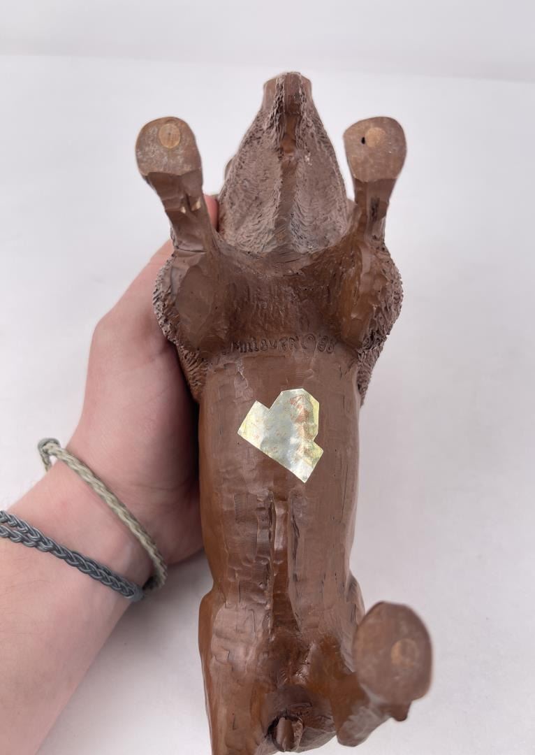 Has a bit of damage on leg as shown. 9 1/8" long, 3" wide, 6" tall.