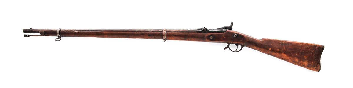 Composite Trapdoor Single Shot Rifle, NVSN, .45-70 cal., 32-1/2'' barrel, lock marked LG&Y and dated 1864, brown finish, walnut stock, with two-piece front sight; rear sight is missing. No U.S. proofmarks. Condition is good as assembled from surplus parts. Stock and barrel are from a two-band rifle musket. Action is tight, bore is strong with some corrosion. Est.: $400-$600. (Antique)