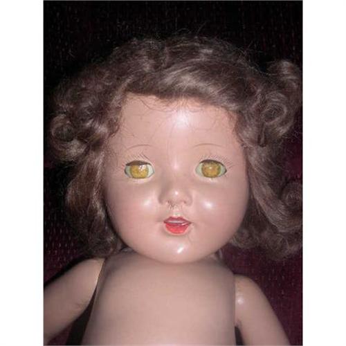Here is a 20" composition doll with strung on head, arms and legs. She needs help with her eyes, some people add oil. She reminds me of the Shirley Temple dolls from this time period but she's just a take off. She has a great wig. The crazing on the face is the worse part. Her body has some rough spots on the feet and crotch so I don't know if someone has tried to do some repair but that would be my guess. She is sold as is. She is from a smoke free environment. Buyer to pay $20 for shipping, insurance and handling. Thanks for viewing.