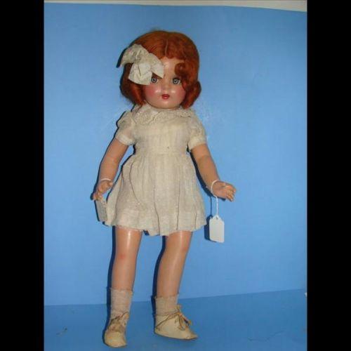 Composition doll has a 1 1/2" crack in the back of her head from the neck. Original clothes hair