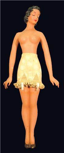 Composition Girdle Store Display Figure. Minor cracks, left forefinger broken, no bra otherwise good condition. 31 inches tall.