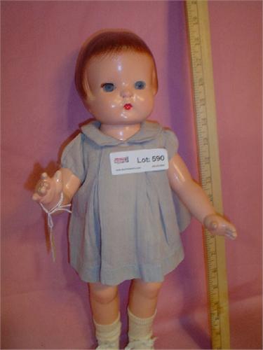 Composition Unmarked Girl Doll. (Missing All eyelashes from left eye). Head is a little loose. Pretty good shape
