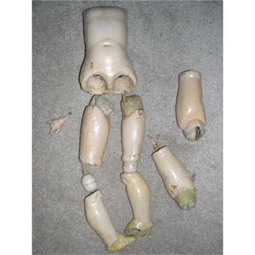 This is an assortment of ball jointed body parts for a bisque socket head doll made in Germany. The torso is 8" tall. There is some smearing of red ink where at one time it would have had a name you could read. Items are sold as is. If you can use them, please bid. They are from a smoke free environment. These parts do not make a complete body. Buyer to pay $20 for U.S. shipping, insurance, and handling.