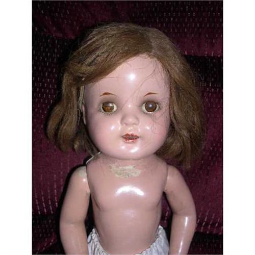 This is a 16.5" composition doll for you to fix up. She is all there but needs to be restrung. She has one foot that is cracked but not broken off. You can see from the pictures she has been played with but could still look nice with some TLC. The seam is separated on the dolls' right side neck to arm. One brown eye has started to turn. If you can love her, please bid. She is from a smoke free environment. There are marks on her head but I can't read them, I'm thinking she looks like a Madame Alexander. You be the judge. Buyer to pay $15 for shipping, insurance and handling. Thanks. for viewing.